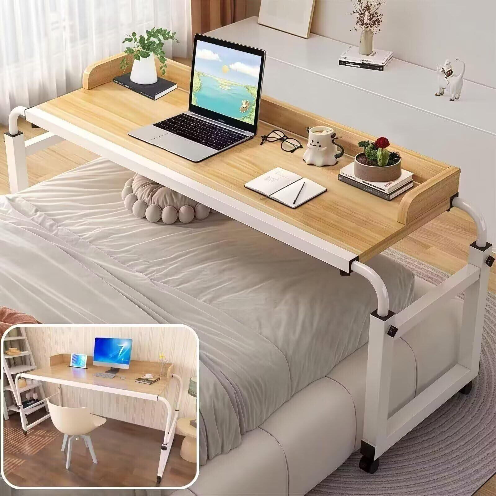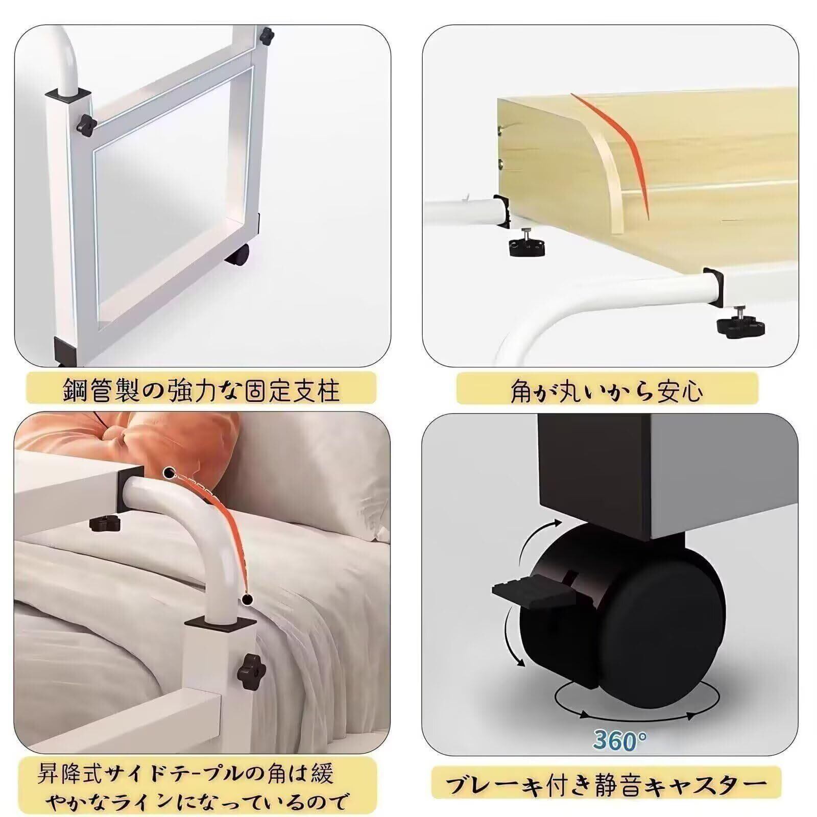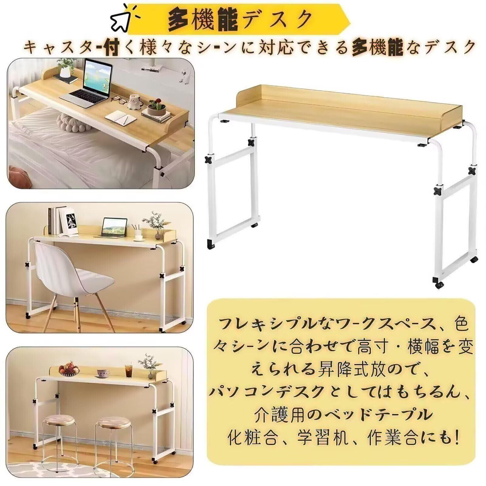 「このオーバーベッドテーブルで、快適で効率的な作業環境を整え、毎日の生活をより充実させてください。この機会にぜひお求めください!」