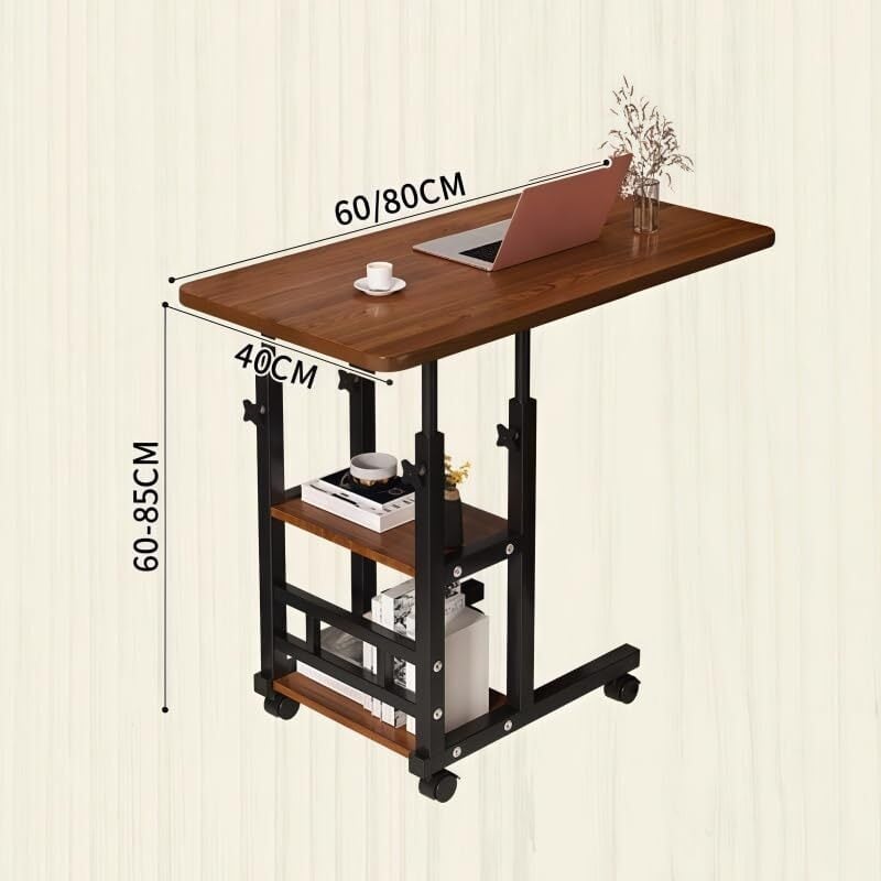 【在庫処分】オーバーベッドテーブル 昇降式 キャスター付き 介護ベッドテーブル ベッド机 高さ調節可能 2段収納 ドリンクホルダー (ブラックフレーム + ウォールナット天板,40cm*60cm)