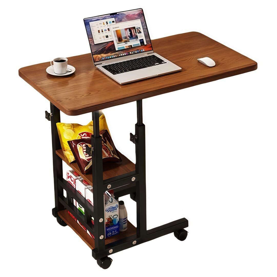 オーバーベッドテーブル 昇降式 キャスター付き 介護ベッドテーブル ベッド机 高さ調節可能 2段収納 ドリンクホルダー (ブラックフレーム + ウォールナット天板,40cm*60cm)