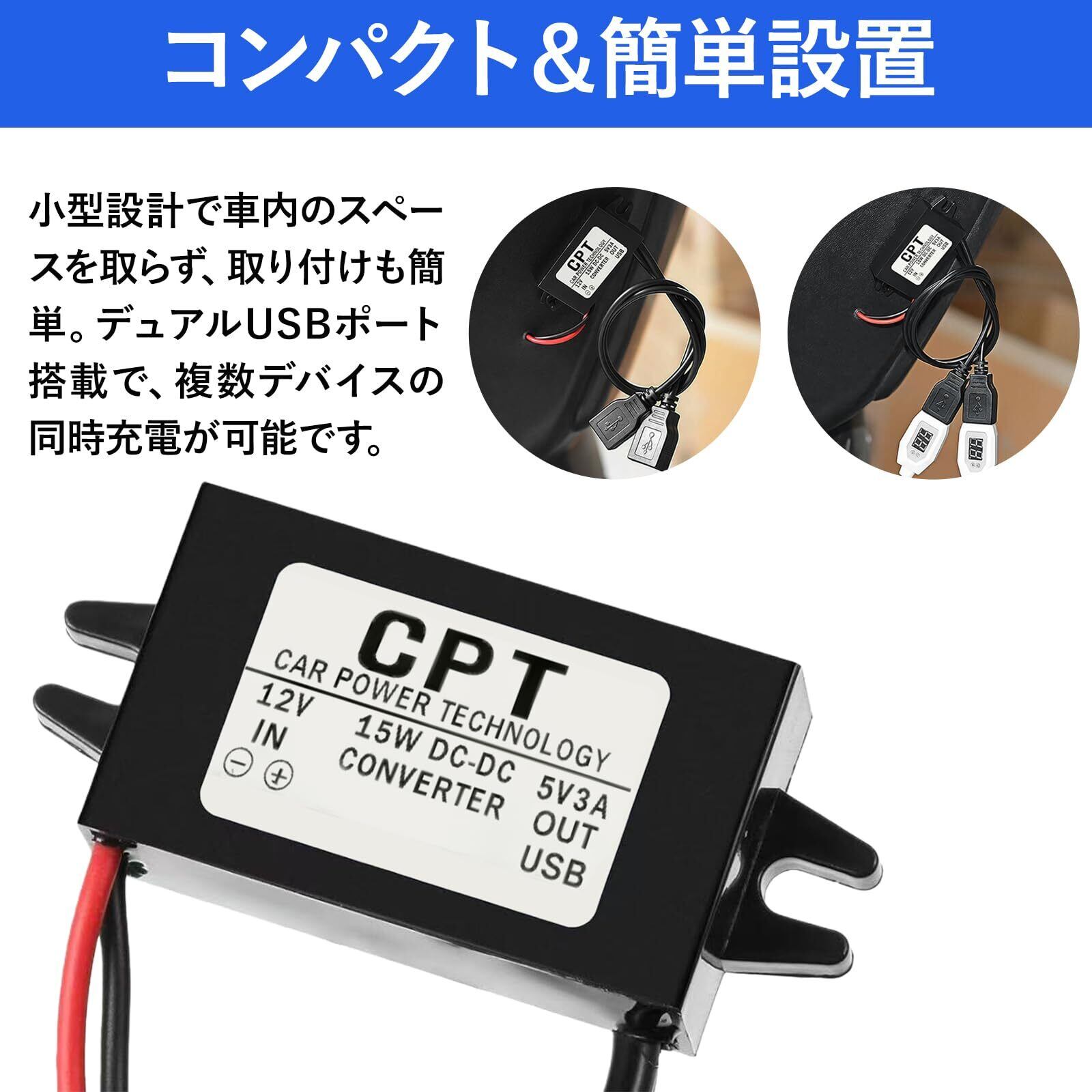 1【車内での電源確保に最適!】この「12v USB DC 変換 デュアルUSB 車載用DC-DCコンバーター」は、車内でのスマートフォンやタブレットの充電にぴったりです。12Vの入力から5V・3A出力を実現し、安定した電源を供給します。