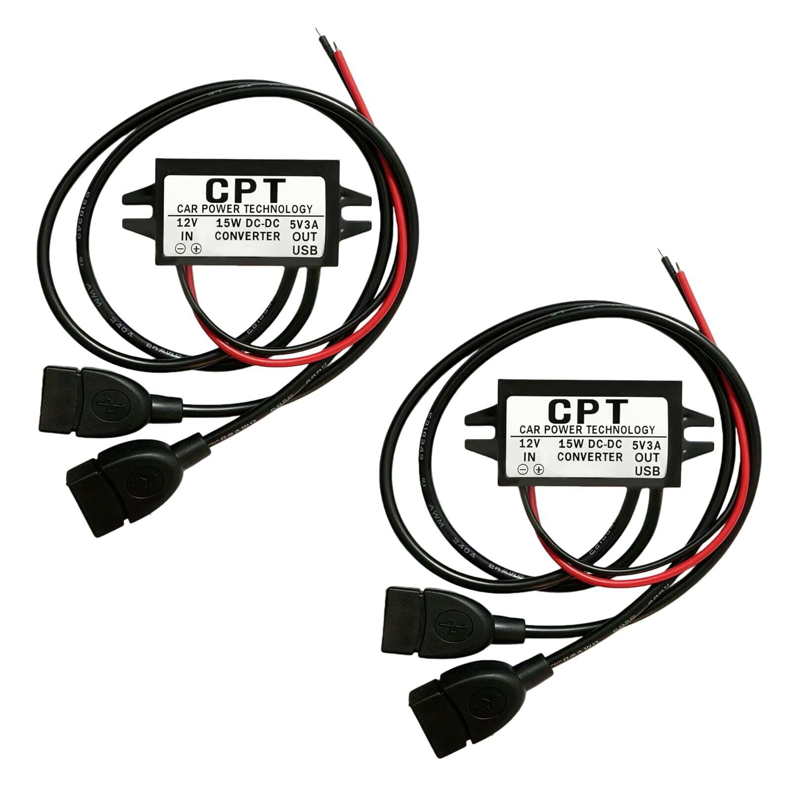 12v usb dc 変換 デュアルUSB 車載用DC-DCコンバーター 12V入力 5V 3A出力 電源変換モジュール ブラック2個セット