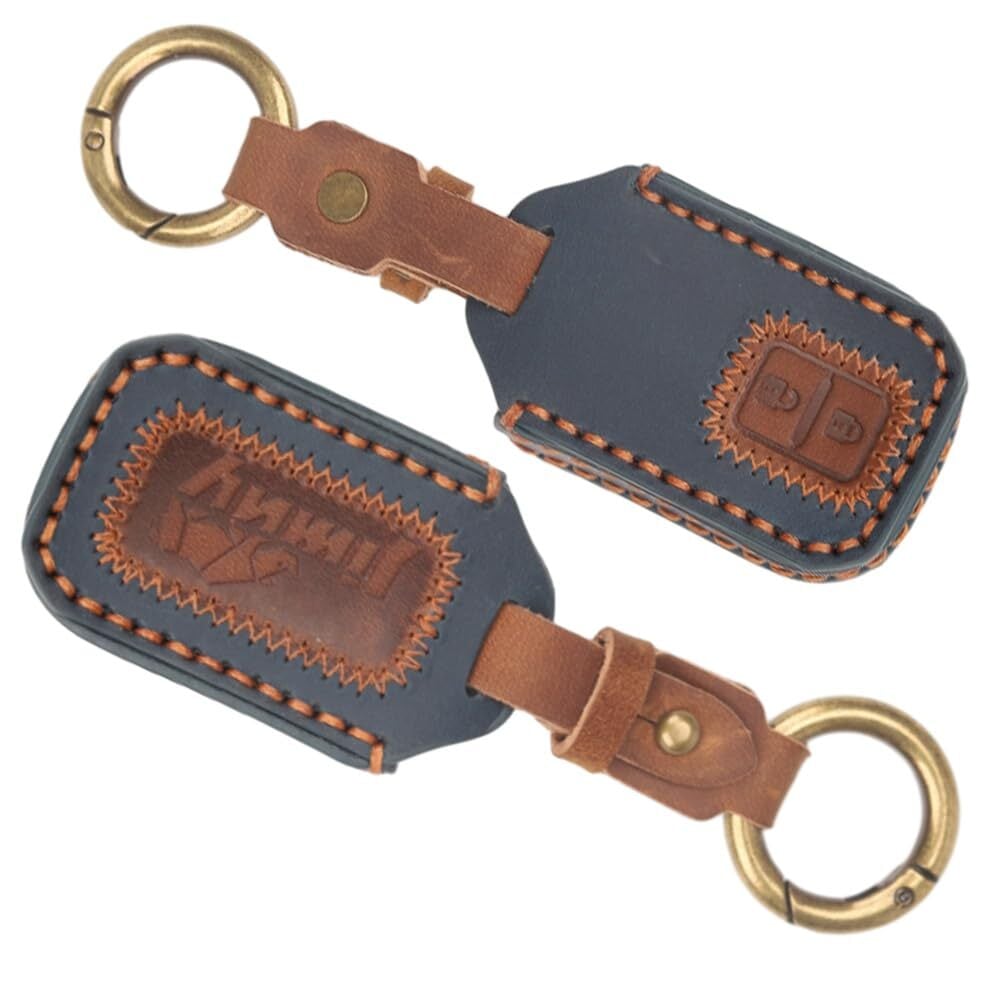 XIKER スズキ ジムニー JB64W JB74W 専用 レザー製 スマートキーケース 手触りいい 2ボタン オシャレ グッズ 軽い キーカバー 汚れ、傷防止 カーリモコン飾り 防塵 耐衝撃 アクセサリー キーホルダー付き 落下防止(ブルー)