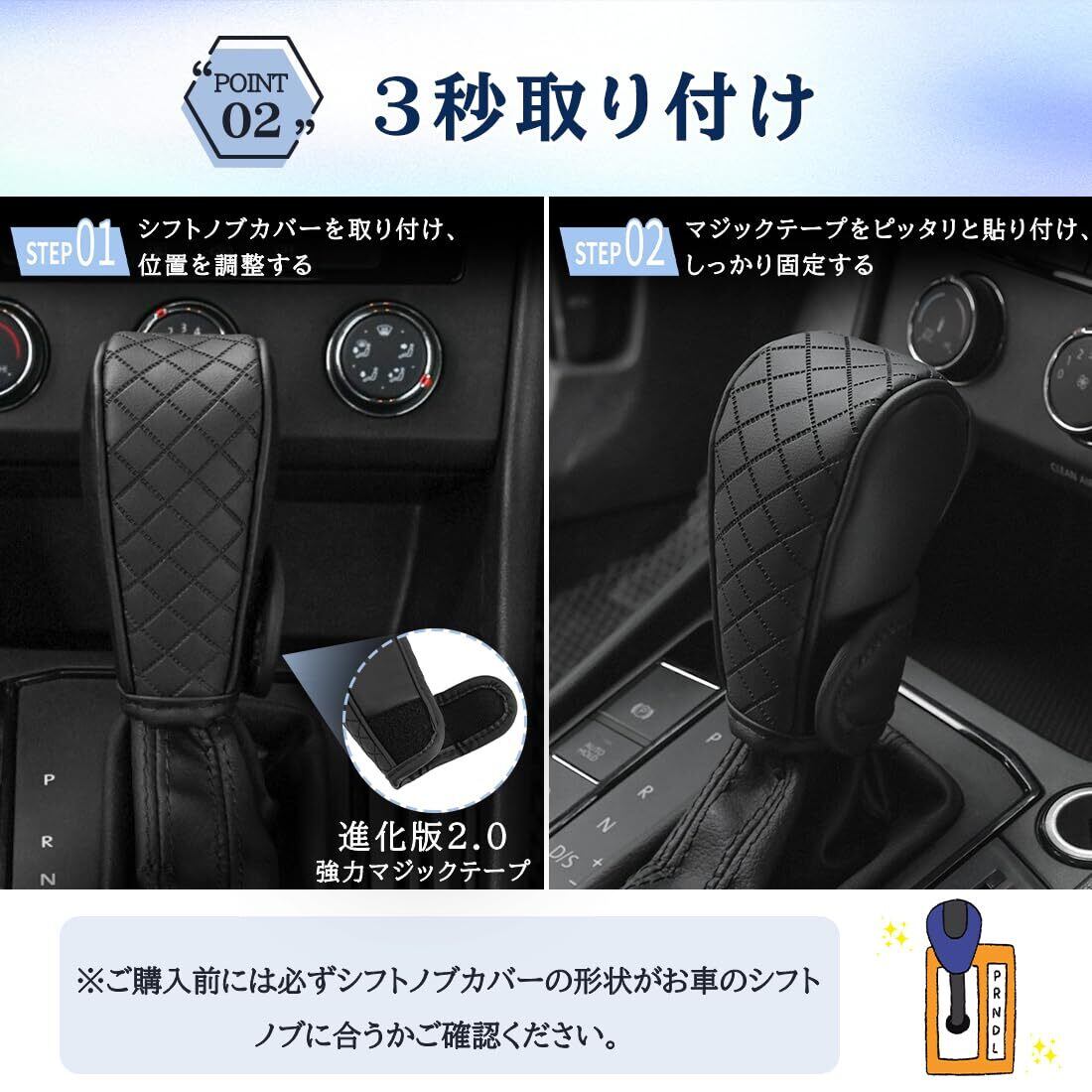 【3秒取り付け・安定感ある】 驚異の簡単取り付け!ヤリスクロスへの装着も面倒な作業は一切不要です。シフトレバー カバーをかぶせて、マジックテープで留めるだけ。※ご購入前には必ずシフトノブカバーの形状がお車のシフトノブに合うかご確認ください。