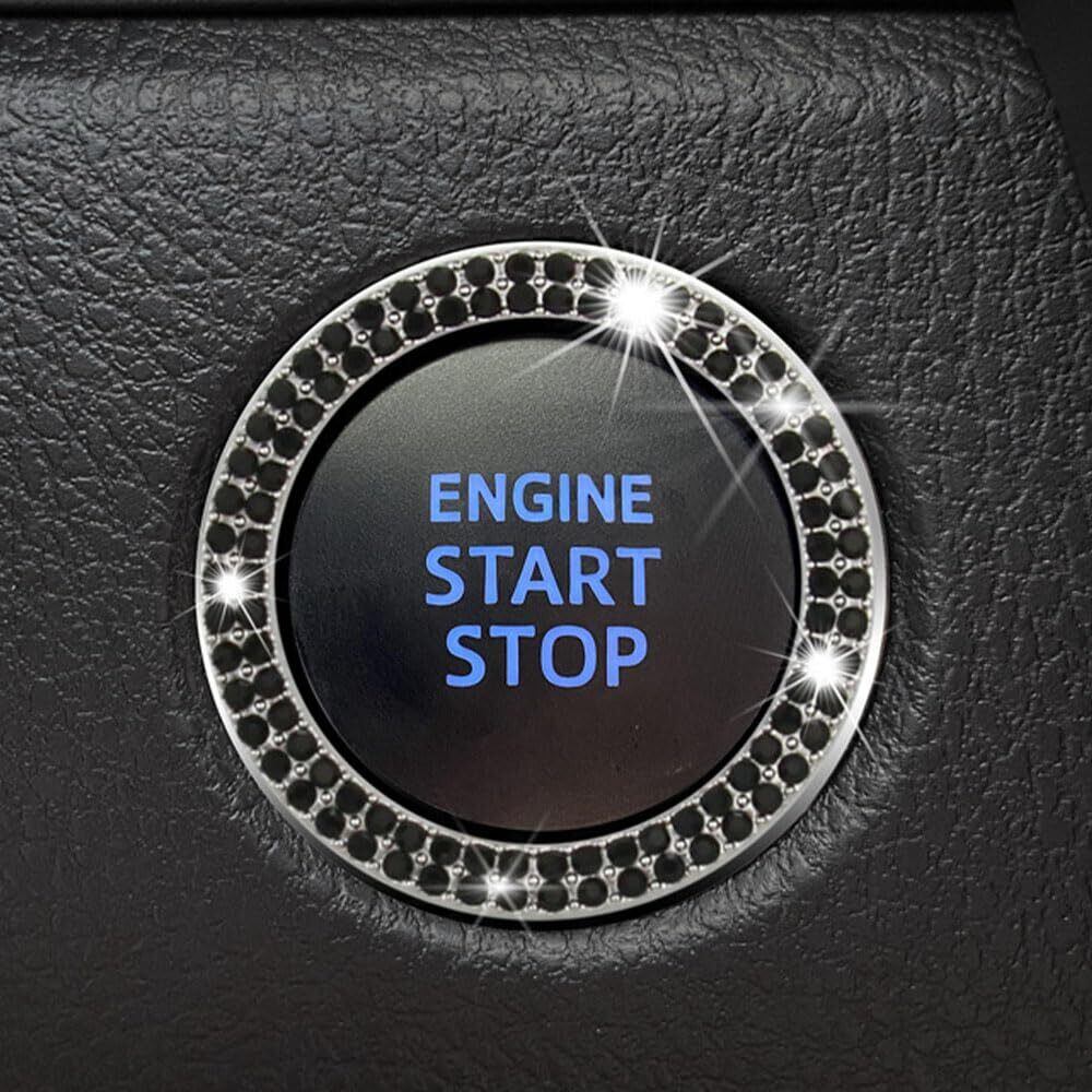 キラキラクリスタルダブルラインストーンカースタートデコレーションリング、プッシュトゥスタートボタンカバー、ノブブリングリング