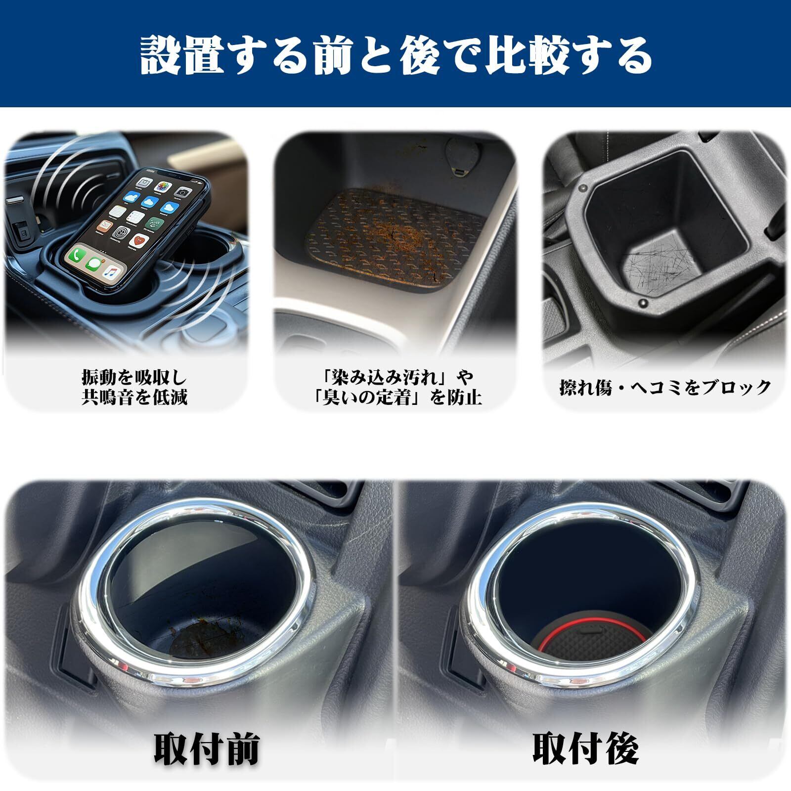 2【優れた滑り止め機能で安心の運転!】特殊なノンスリップ加工が施されており、強力な滑り止め効果を発揮。このマットを使用することで、揺れる車内でも安心して小物を収納でき、ストレスのないカーライフを楽しむことができます。