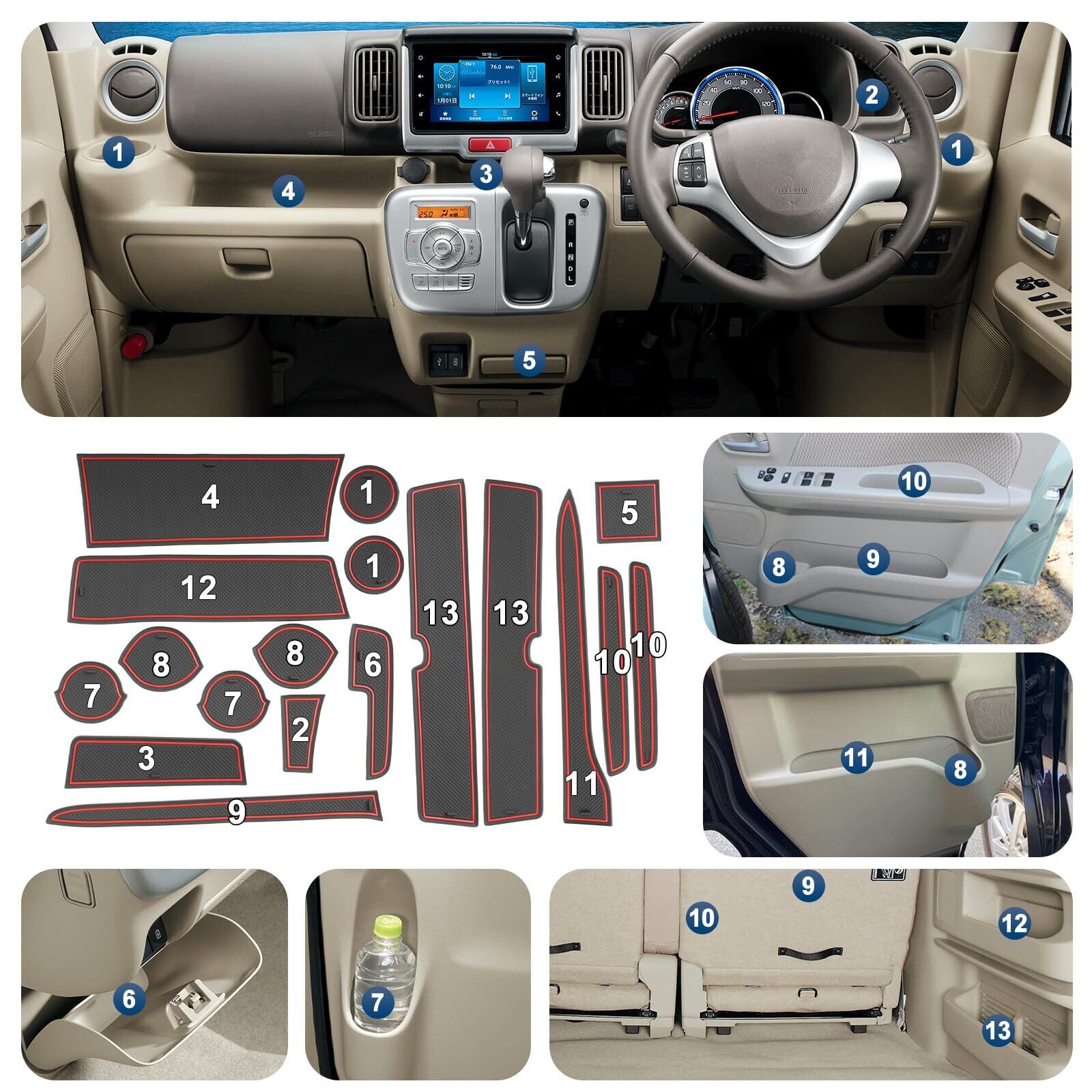 【RUIYA】スズキ エブリィ DA17V DA17W 専用 ラバーマット ゴムマット エブリィワゴン ドアポケット インテリア ラバープレート ノンスリップ 防音 傷防止 滑り止め 防汚れ ノイズ軽減 DA17V エブリイバン エブリイワゴンDA17Wパーツ カスタム アクセサリー 取付簡単 車種専用 レッド