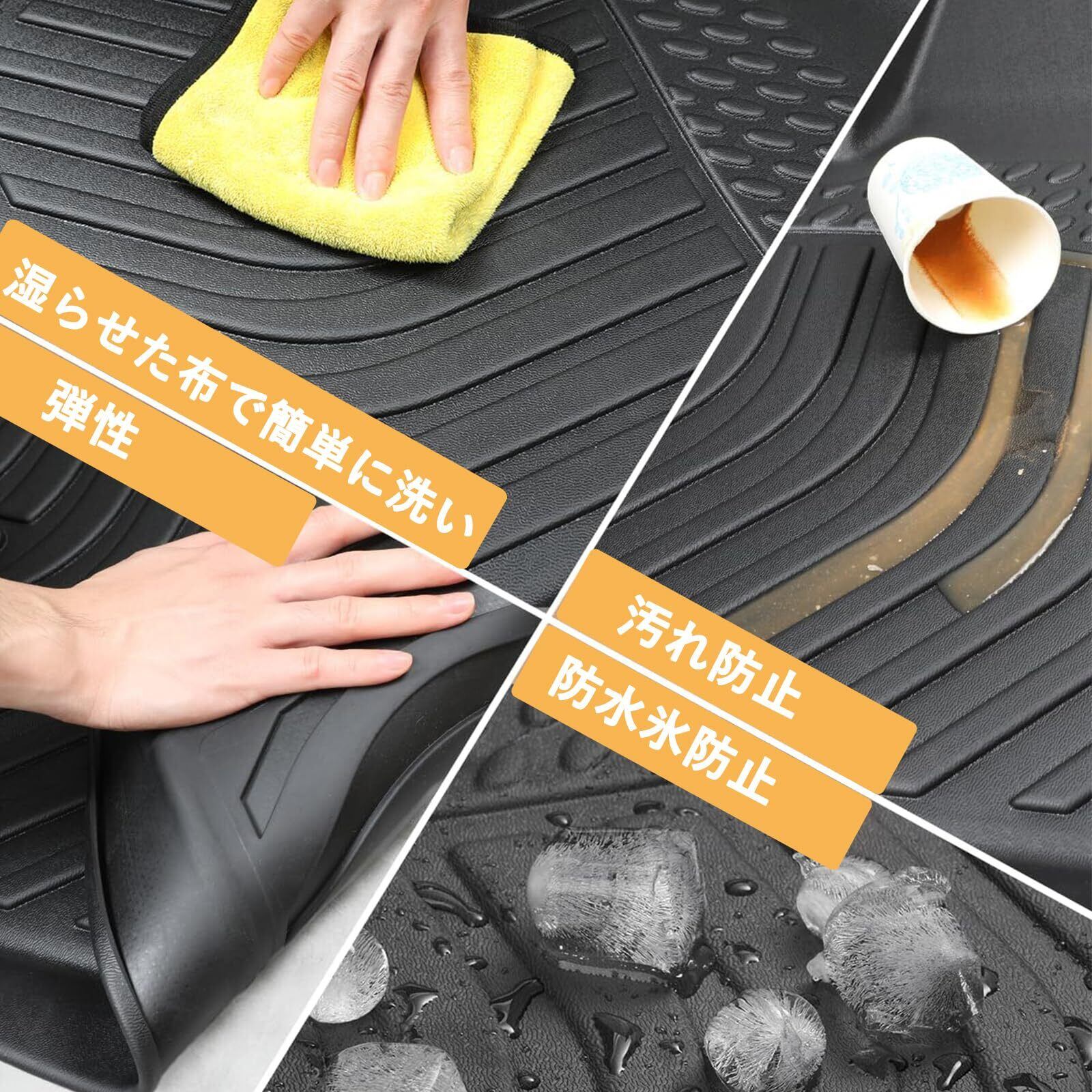2【耐久性と防水性を兼ね備えた素材!】このフロアマットは、耐汚れや耐摩擦性に優れたTPE素材を採用。雨の日やアウトドアでの泥汚れにも強く、安心してご使用いただけます。また、抗菌効果もあり、常にクリーンな車内を維持できます。お手入れも簡単で、いつでもキレイをキープ!