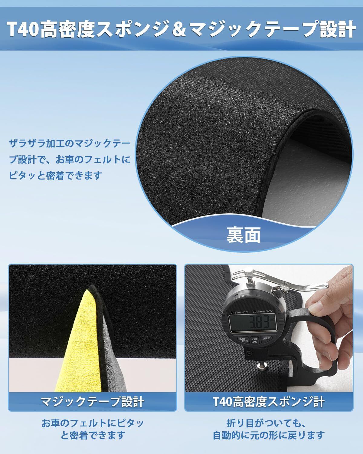 4.【T40高密度スポンジ&マジックテープ設計】:T40高密度スポンジが採用され、折り畳むことができ、折り畳む後、折り目がついても自動的に元に戻れます。弾力性に優れています。裏面にはザラザラしたマジックテープ設計で、トランクのフェルトとぴったりくっつくことができます。また、表面はPVCレザー防水素材ので、濡れた水着や釣り工具などの水漏れの心配がありません。汚れても清掃しやすいです。キャンプ、釣り、スキー、海遊びなどのアウトドアが好きな方にお勧めです!