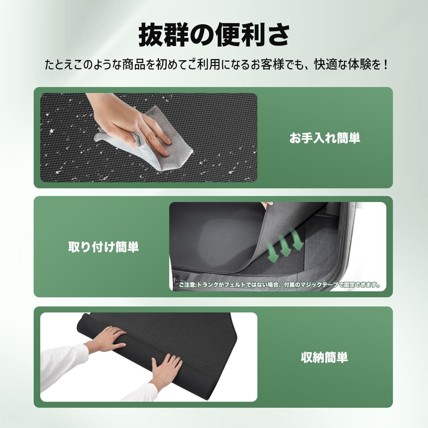 4.【取り付け簡単&収納便利】:車種専用設計で、ピッタリのフィット感を実現しており、取り付けに特別な工具は不要です。トランク底面がフェルト仕上げでなくても、付属のマジックテープ数枚でしっかり固定でき、ずれません。見た目も美しく、柔らかな質感。くるっと丸めるだけで簡単に収納できます。