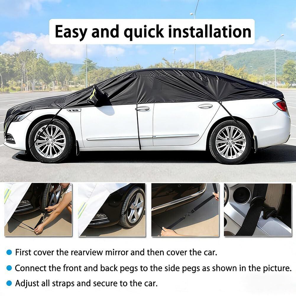 1【あなたの愛車をしっかりと守るハーフカバー!】この「ハーフカバー」は、自動車専用に設計されており、210Dポリエステル生地を使用しています。薄手のコットン裏地で愛車を包み込み、快適な保護を提供します!