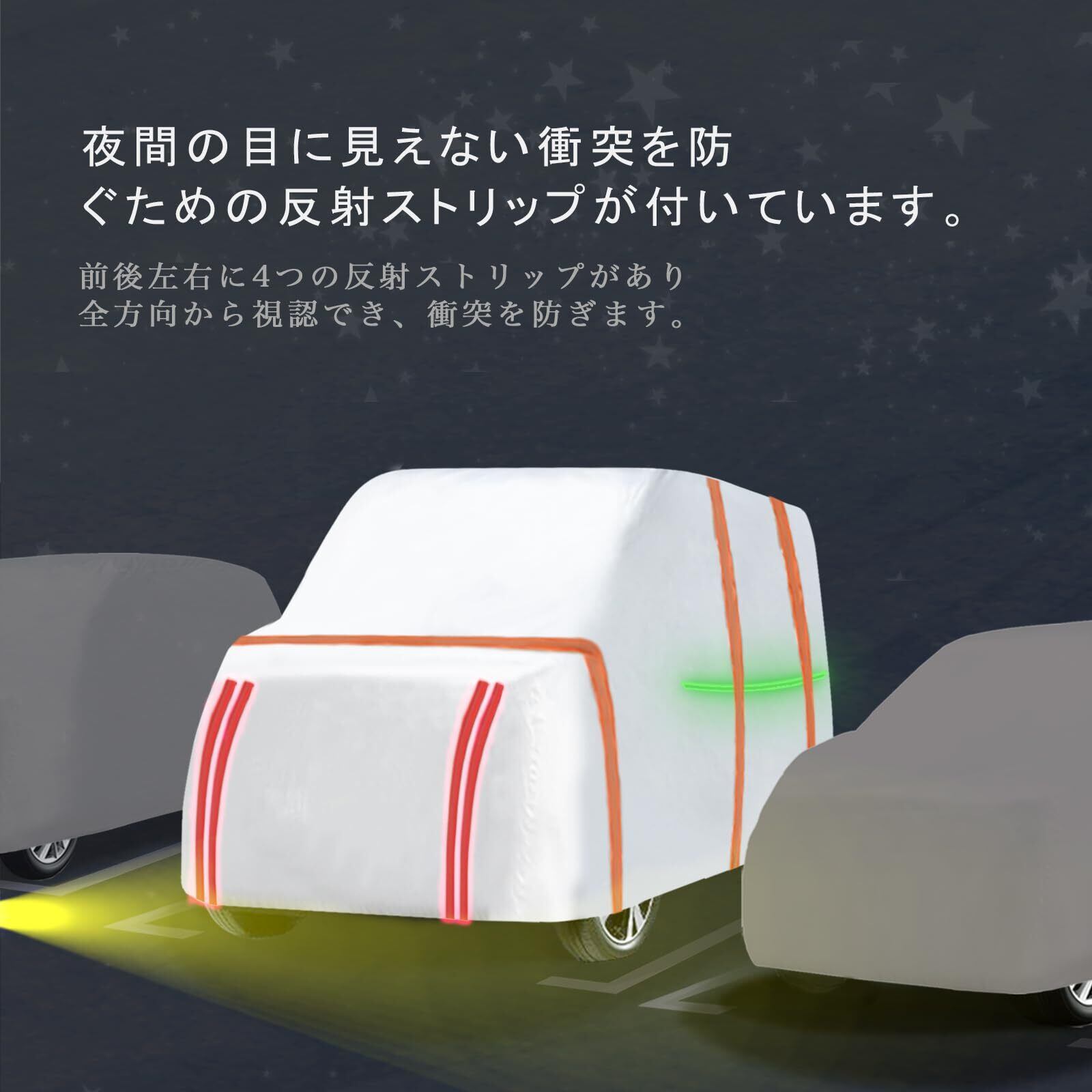 2【優れた保護性能を発揮!】本商品は、雨、霜、台風などからお車をしっかりと保護。特に紫外線からの影響を軽減し、塗装や内装の劣化を防ぐため、愛車を常に美しい状態に保ちます。安心してご使用いただける耐久性を兼ね備えています。