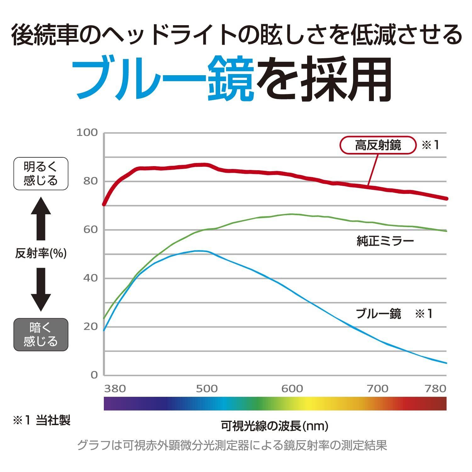 ●スモークフィルム装着車特有の暗く見えにくい後方視界を明るく見えやすくする高反射鏡を採用。