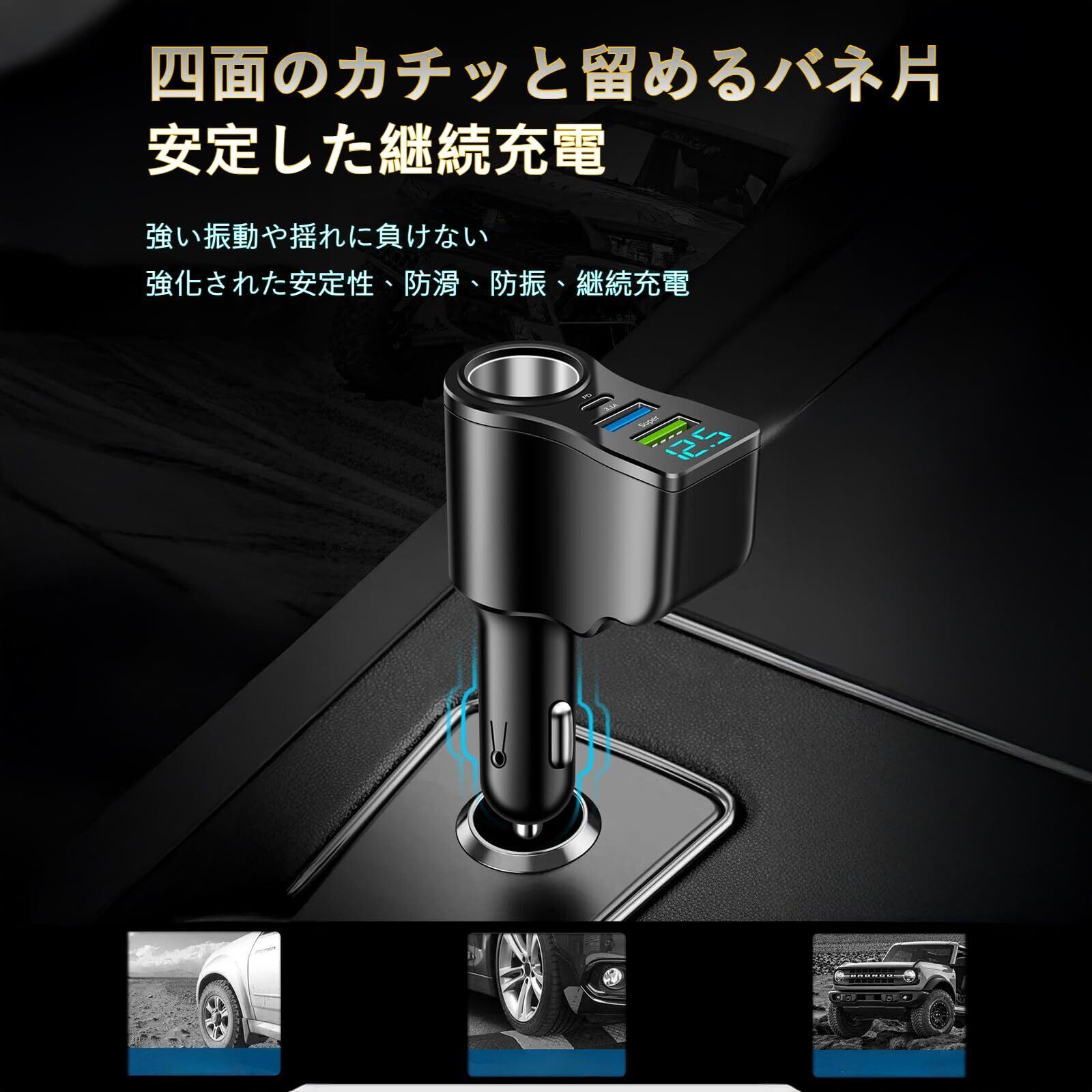 4in1シガーソケット 【66W超急速充電】 車 充電器 車載充電器 PD30W 急速充電プロトコルに対応し リアルタイムのバッテリー電圧監視機能付きLEDディスプレイ Type-C デュアルUSB 3ポートインターフェースを 同時に充電できるインテリジェントな電流分配機能 する12V~24Vの幅広い電圧対応