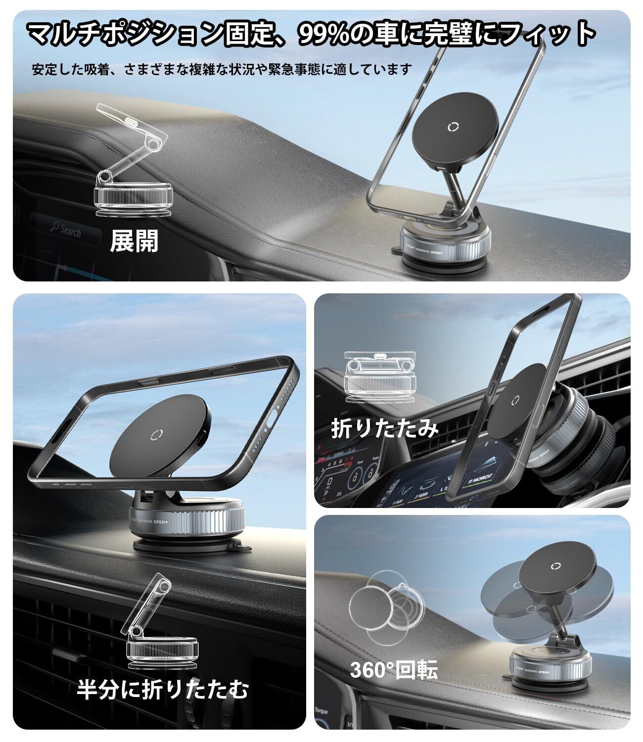 【新着商品】CloudValley スマホホルダー 充電 真空スマホホルダー マグセーフ 吸盤 15W 急速な充満 MagSafe対応 吸引のコップのダッシュボードの台紙が付いている無線充満電話ホールダー ダッシュボード/風防ガラスのための 360° 回転磁気車の台紙 片手操作 1秒で着脱