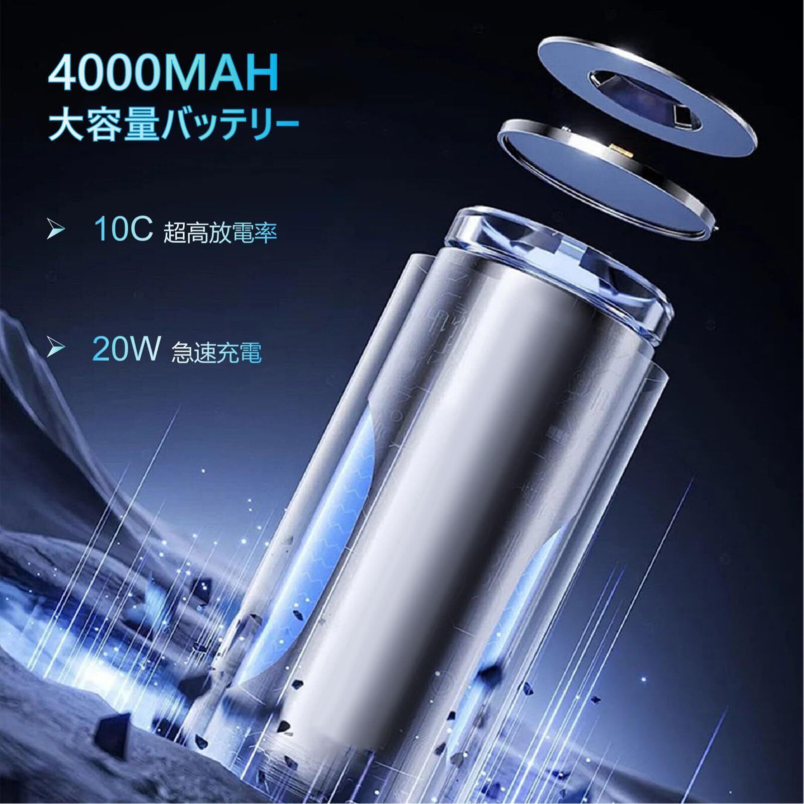 2【ワイヤレスで自由な使用感!】4000mAhの充電式バッテリーを搭載しており、コードに束縛されず、どこでも簡単に使用できます。家庭やアウトドア、さらには車内など、使いたい場所を選ばずに作業を進められます。