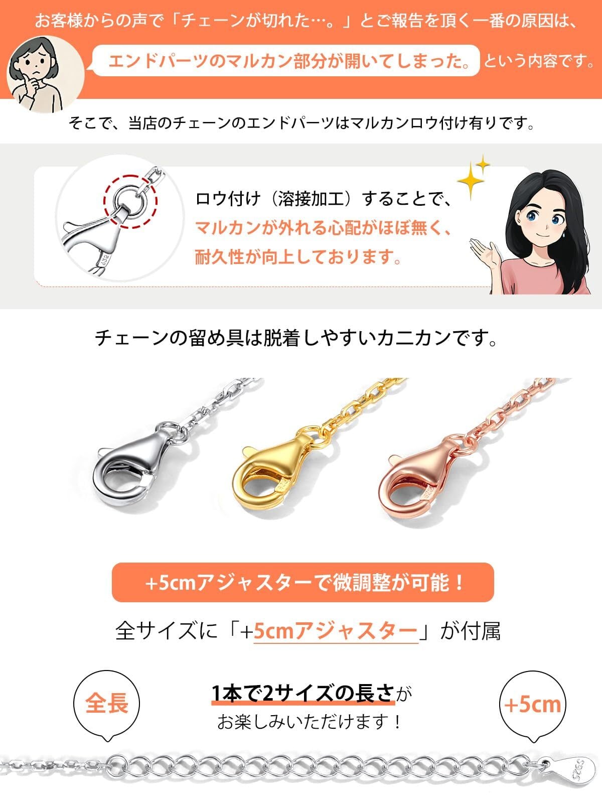 2【長さ調節が可能で多様なスタイルに対応!】ネックレスの長さは45cmから70cmまで調節が可能です。お好きな長さに合わせることで、自分だけのスタイルを楽しむことができ、コーディネートの幅が広がります。あなたの個性や気分に合わせたアレンジが可能です!