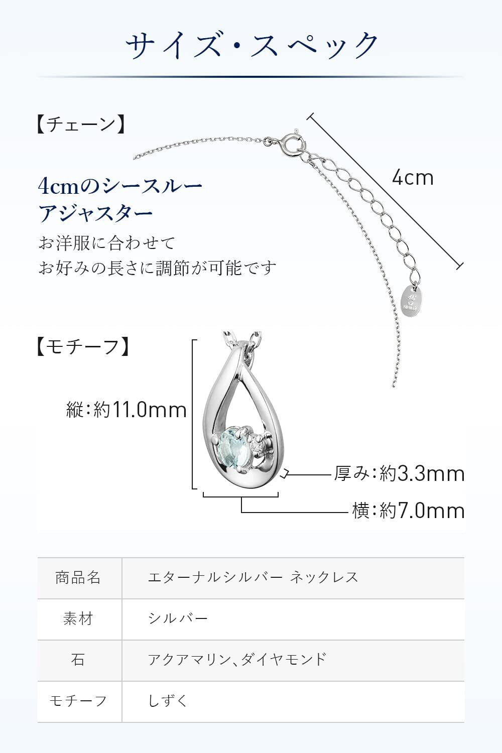 - 特徴:アクアマリンを用いたしずく型デザインのエターナルシルバーネックレス