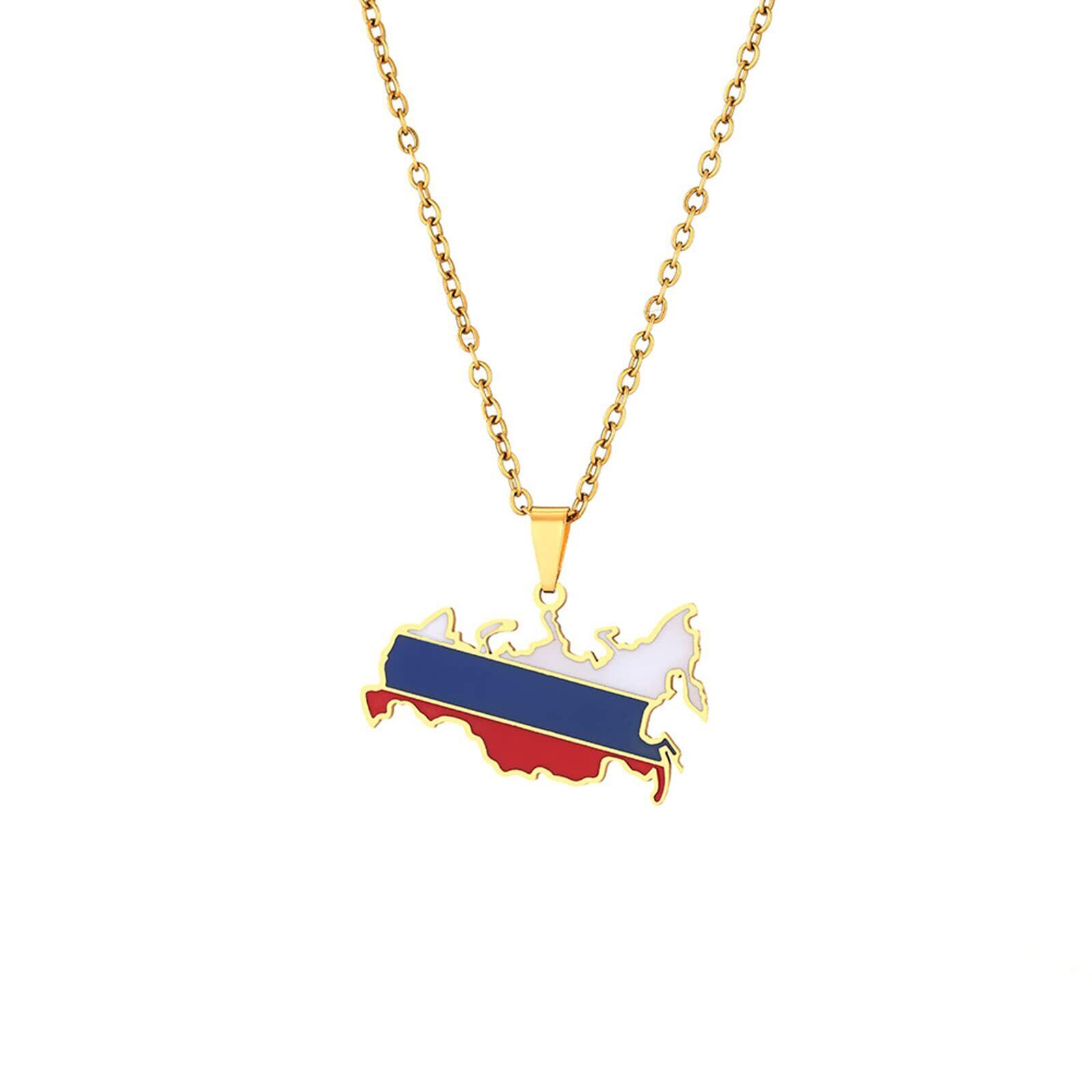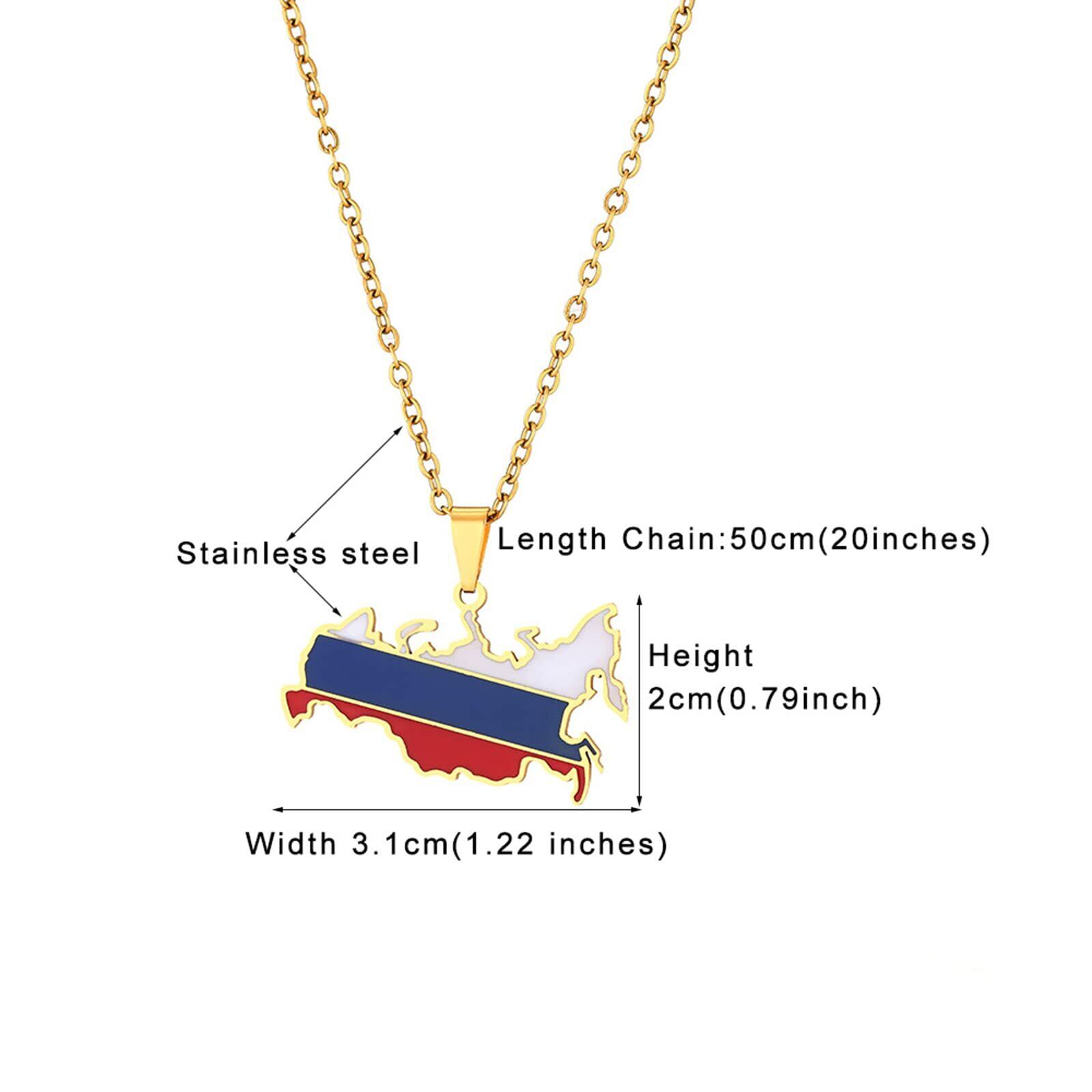 ロシア地図ネックレス ペンダントネックレス ロシア国旗ネックレス ロシアジュエリーチェーンネックレス ステンレススチール素材