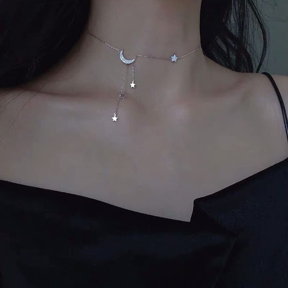 AIKS チョーカー レディース チェーン プラチナ 星月 月 チョーカー ネックレス 星チョーカー スターネックレス ステンレス 金属アレルギー対応 カジュアル ファッション アクセサリー サイズ調整可能