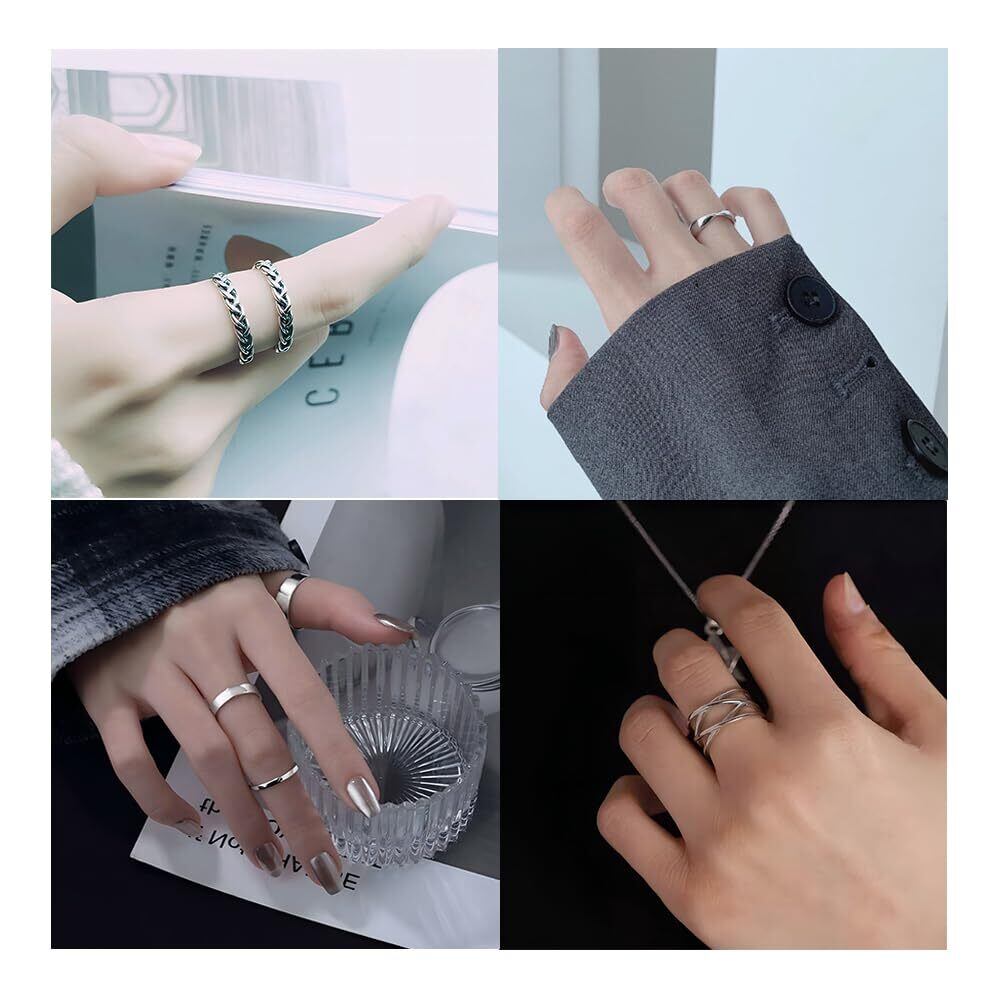 [HEJINYUN] 6点セット 指輪 レディース メンズ リング アクセサリー ファッションリング シルバー おしゃれ シンプル 調節可能 人気 アクセサリー プレゼント ユニセックス