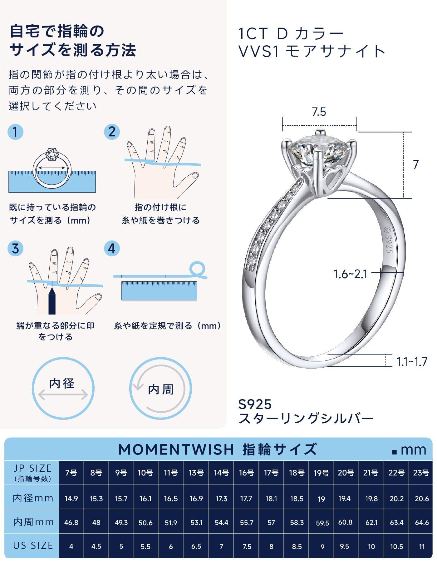 【新春セール】MomentWish 婚約指輪 レディース, 1カラット モアサナイト リング, シルバーリング 925 プロポーズリングエンゲージリング 結婚記念日 Dカラー VVS1 ダイヤモンドプレゼント 女性 人気