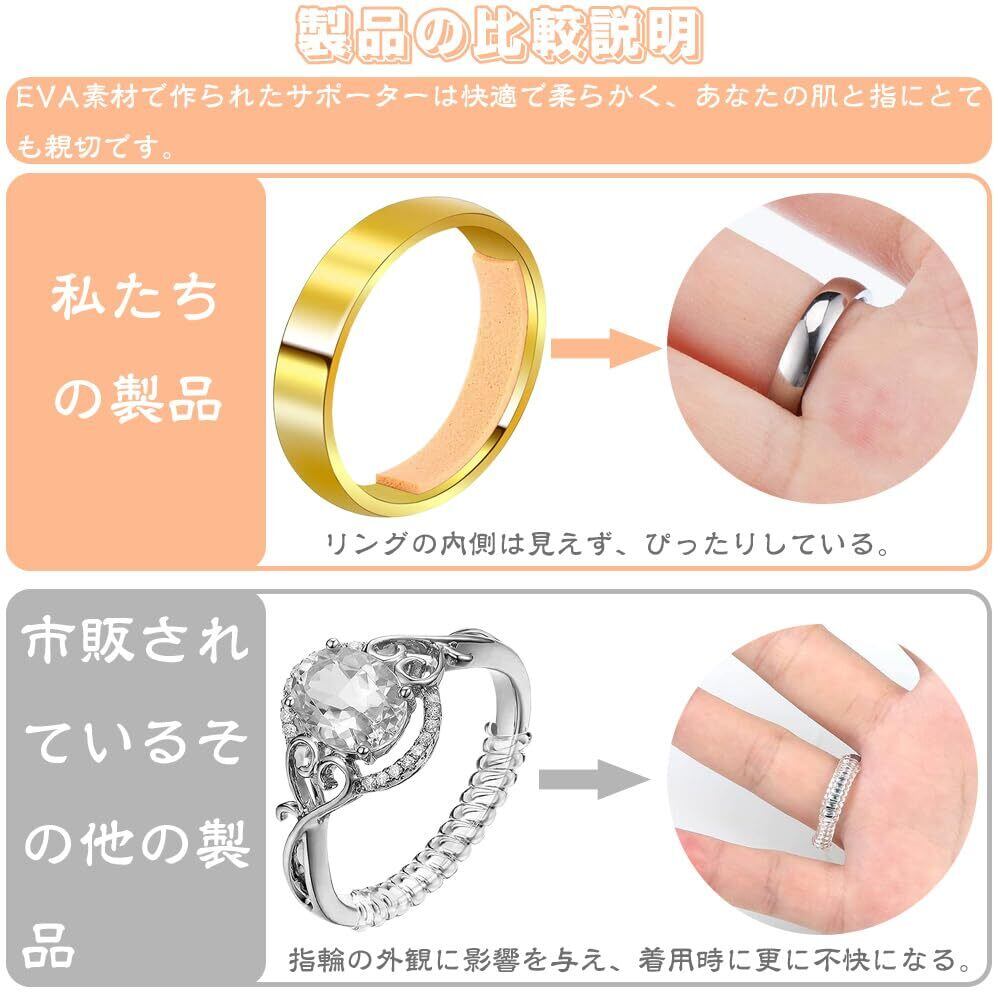 背面は粘着性が高く、脱落しにくい。 使用前に破り、リングの内側にしっかりと固定してください。 使用後は滑り止め効果があり、指輪の装着時の滑り止めになります。 指輪や指の美観を損なうことはなく、誰も指輪の調節器の存在に気づかない。 指輪を紛失から守ることもできます。