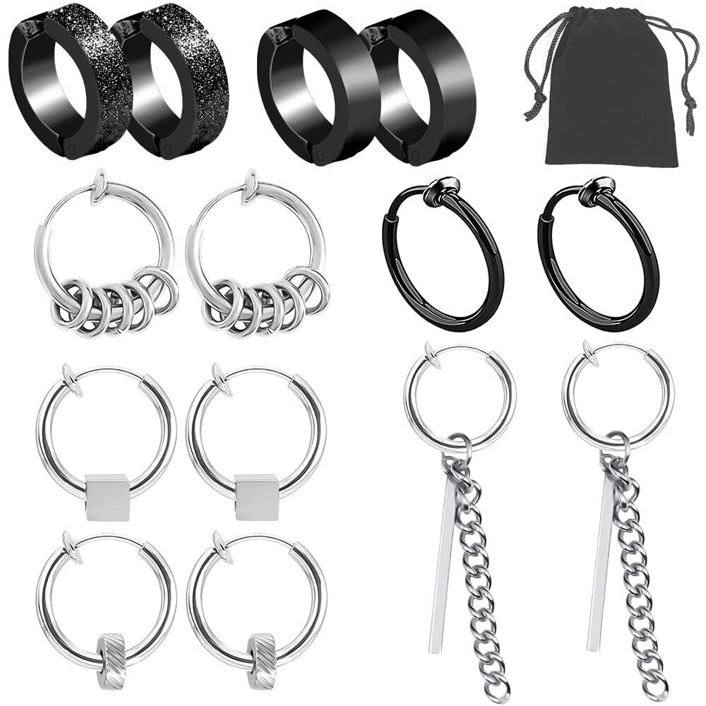 【特価商品】フェイクピアス メンズ イヤーカフ メンズ ノンホールピアス イヤリング イヤーカフ 7ペア14個セット メンズ レディース bts フープピアス リング 両耳用 サージカルステンレス316L 金属アレルギー対応 シルバー ブラック 収納ポーチ付き