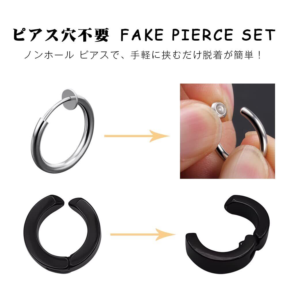 【お得な7ペア&14個セットフェイクピアス】ピアス穴なしでもオシャレに楽しめるフェイクピアスです。7ペア、合計14個で、ピアスのパーツは付けたり、外したりできるし、自由に組み合わせることによって異なるスタイルを楽しめます。イヤリングをペアでつけたり、片耳だけ付けたり、重ね付けたり、軟骨ピアスとして、ブラックととシルバー色違いで付けたりして10個以上の付け方法があります。どんなファッションにも合わせやすく、個性的で自分の魅力さを十分に表せるノンホールピアスメンズです。【プレゼントとして最適】男女兼用で、ペアピアスとしてもおすすめの商品です。自分用にはもちろん、誕生日、クリスマス、記念日など大切な方への贈り物にもおすすめです。