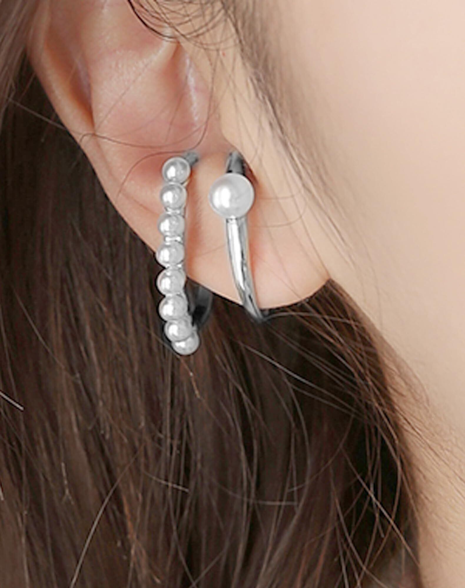 【人気のイヤーカフパールセット】4種類のデザインが各2個ずつセットになった8点セットです。8つ入っているので色々な組み合わせが楽しめ、装着時に広げたり閉じたり出きるので外れにくいです。ユニセックスデザインの人気両耳イヤカフセットで、耳に穴を開ける必要がなく、耳への負担もなく長時間つけていても疲れにくい上、金属アレルギーの方にもご利用いただけます。