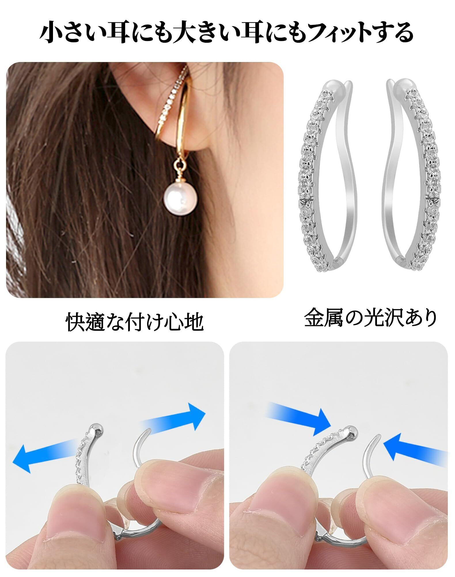 4【様々なスタイルでアレンジを楽しもう!】このイヤーカフは4ペアセットなので、シンプルに着用するだけでなく、他のアクセサリーと合わせて重ねづけアレンジが可能です。あなたのスタイルに合わせて自由にコーディネートを楽しんでください!
