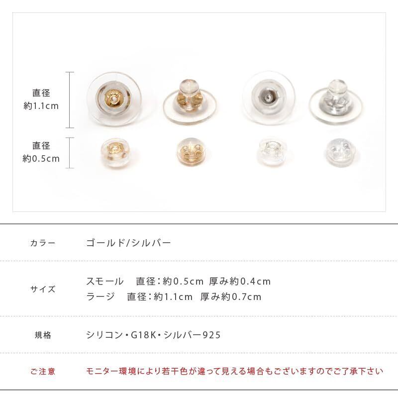 落ちないピアスキャッチ 2個セット ダブルロック 下を向かない 大ぶり 大きい シリコン 18K K18 金属アレルギー対応 ゴールド シルバー ピアス レディース アクセサリー ゆうパケット配送1cm(ラージ ゴールド)