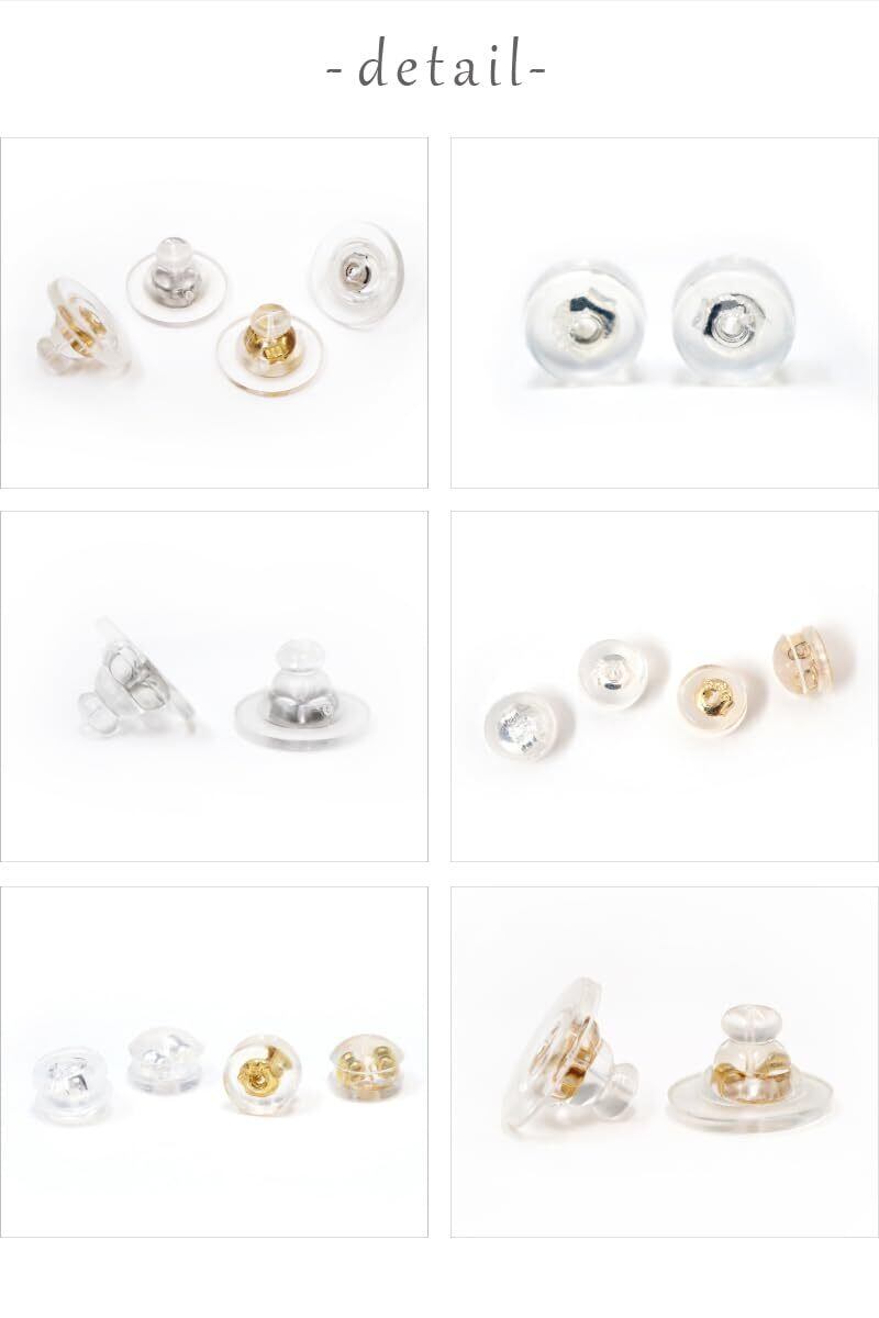 地金とシリコンの二つでキャッチするダブルロック式の落ちないピアスキャッチです。