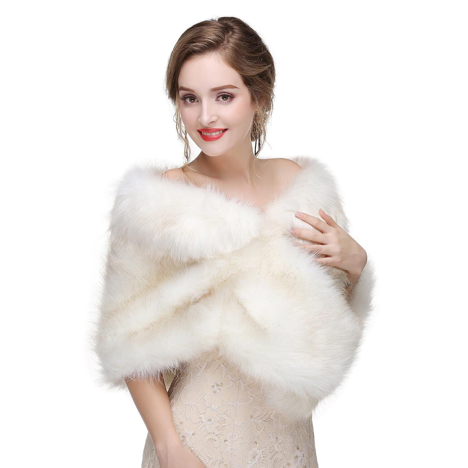 【特価商品】[Muzhilun] フェイクファー ストール 厚手 大判 白いキツネの毛が華麗な金色の光沢を反射 上品ファーショール 華やか ショール レディース 着物 振袖用ドレス用 ファー 暖かい フェイクファー 新年 結婚式 パーティー 花嫁