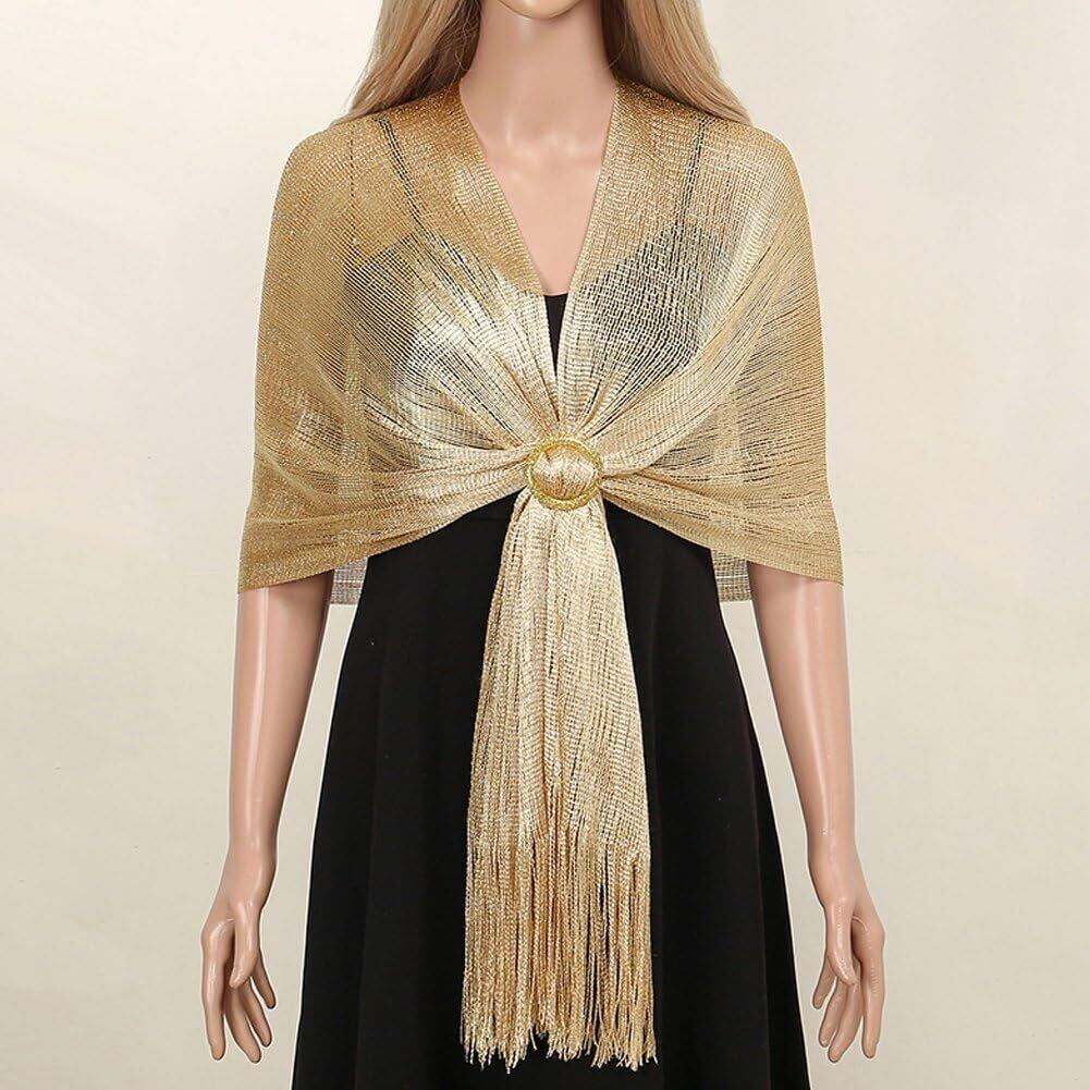 【特価商品】ショール タッセル付き メタリックショール ブライダル ブライズメイド ウェディング イブニング パーティー用 コスチューム アクセサリー ゴールド
