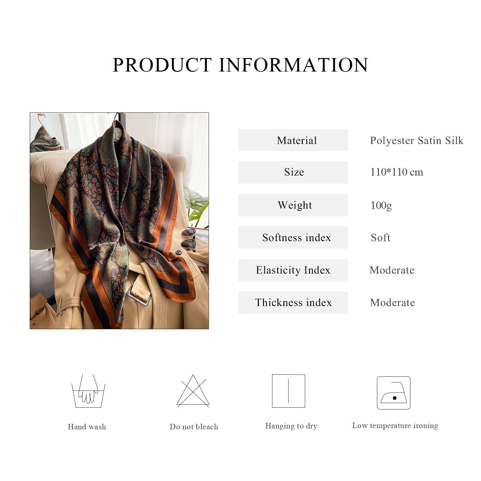 【特価商品】[LumiSyne] シルクスカーフ レディース 大判 スクエア 花柄 樹柄 動物柄 レトロ ゴージャス スタイル サテン ヘッドスカーフ 日焼け止めショール 装飾 正方形 ネック 頭飾り 髪の包帯 110×110cm | maimaiwalnut