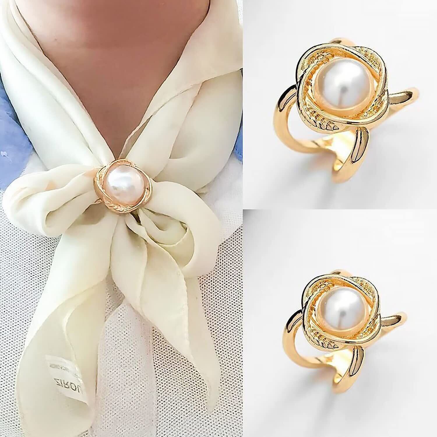 【特価セール】スカーフリング 6個女性のファッションスカーフリングバックルクリップ フェイクパールクリスタルラインストーン ファッションエレガンススカーフリング (セット A) (セット A) | maimaiwalnut