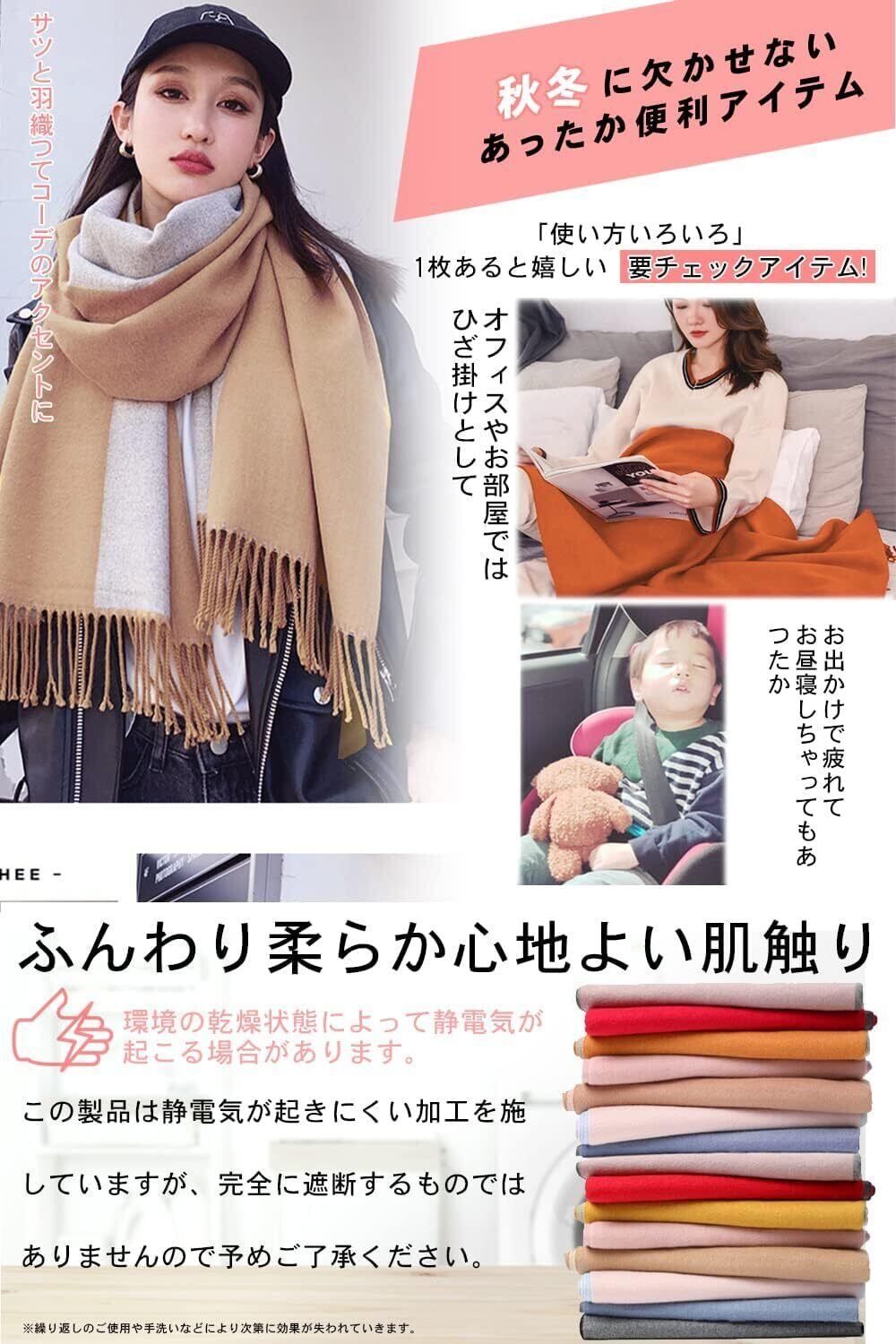 【数量限定】[Hoomoi] マフラー レディース 人気 カシミヤタッチ ストール 大判 マフラー ファッション 冬 厚手 両面 使える ギフトボックス付き 無地 学生 誕生日プレゼント フリンジ生地 襟巻き 秋冬定番 クリスマスプレゼント