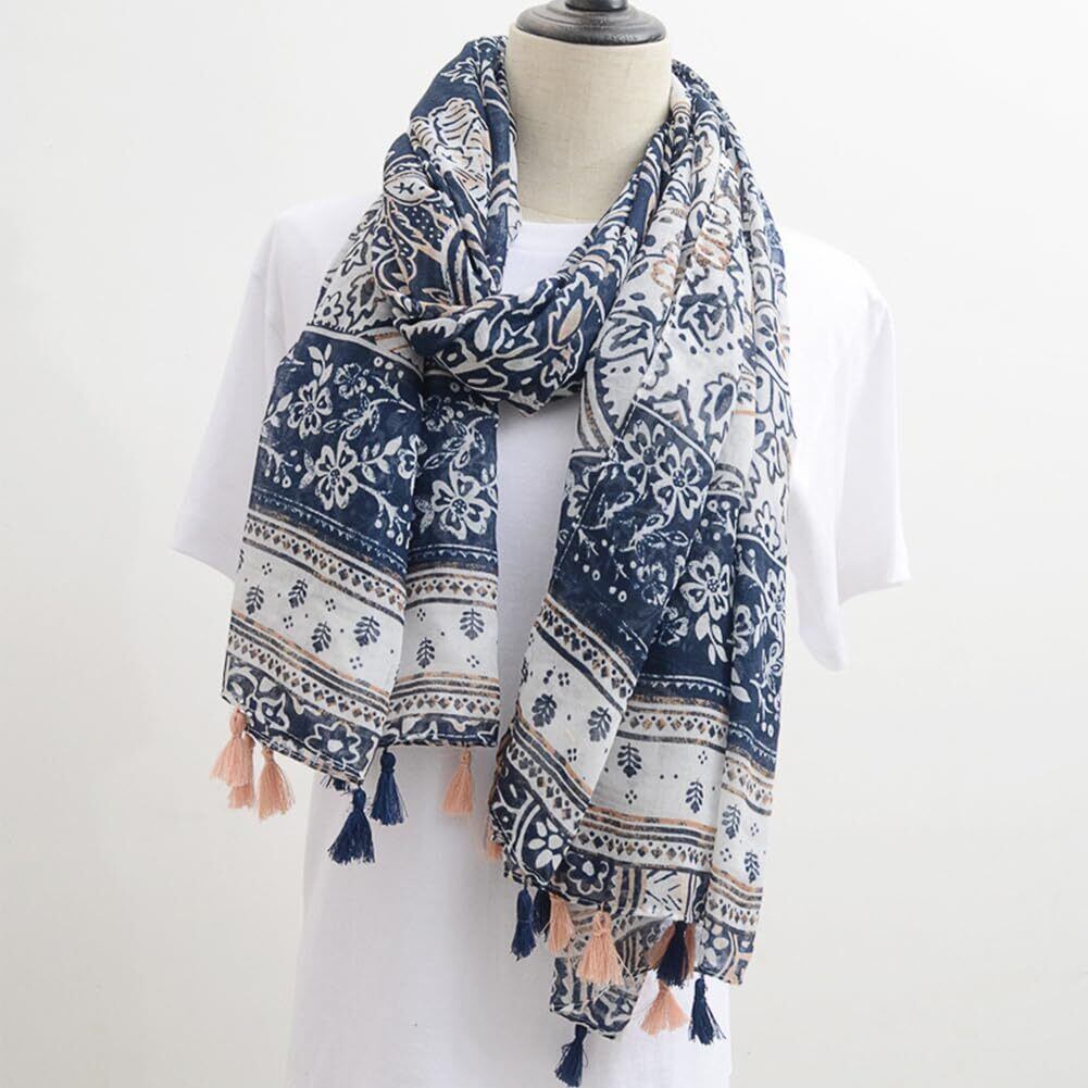 【人気商品】[FASELE] ストール マフラー 大判 柔らか 肌触り ふんわり ボヘミアン風 爽やか 清新 綿麻風 冷房対策 日焼け対策 UVカット 薄手 温度差対策 コーデ 誕生日 母の日 プレゼント 贈り物 ギフト オールシーズン おしゃれ 旅行 海辺 ビーチ | maimaiwalnut