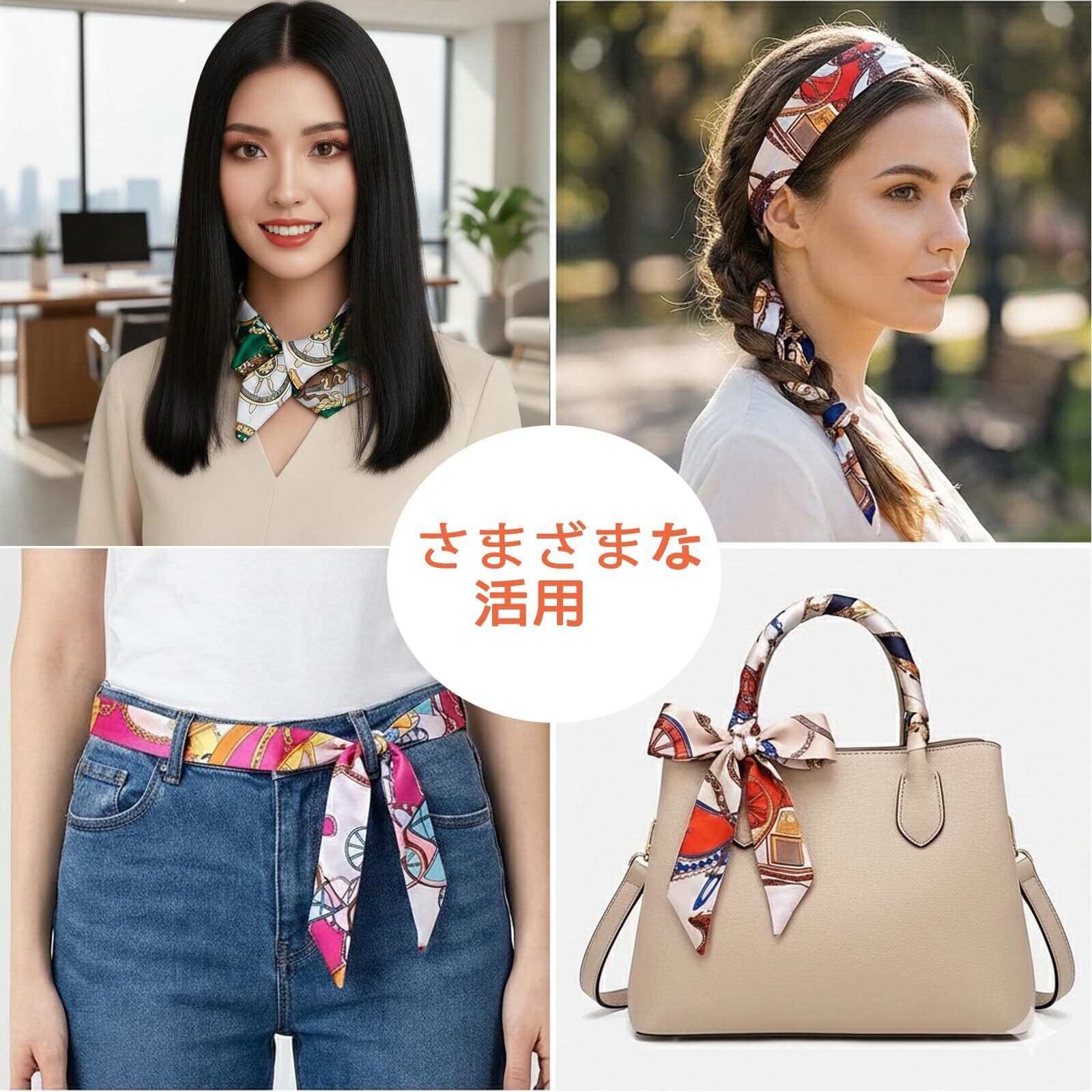 【2022最新】[XJ-PNR] スカーフレディース リボン スカーフ シルク風 ヘアバンド 髪飾り バッグ飾り 持ち手 小物 アクセサリー 通勤 12枚セット 細い カジュアル