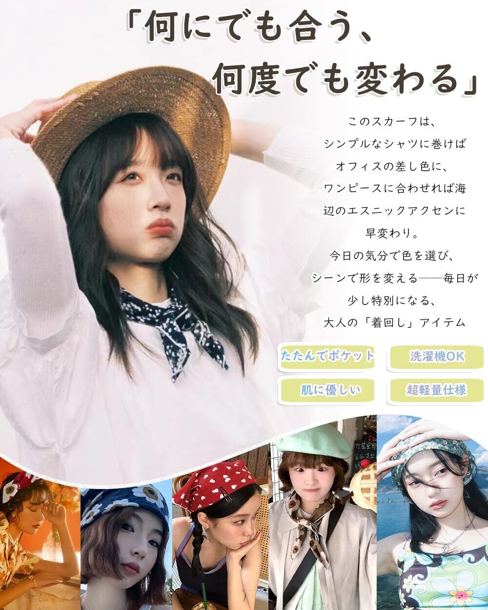 【特価セール】[Ekieta] 綿100% スカーフ レディース正方形56×56cm ネッカチーフ バンダナ トオフィススカーフ ハンカチ多機能母の日 バッグ飾り 髪飾り 春夏 海辺 旅行 通勤 ギフト | maimaiwalnut