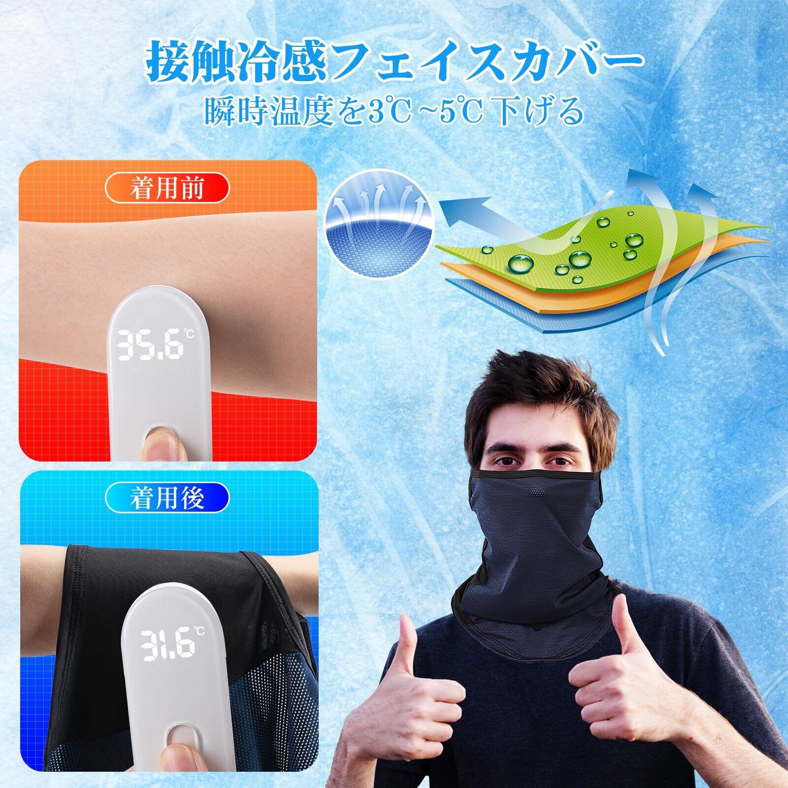 【数量限定】[Goture] フェイスカバー UVカット UPF50+ 冷感 耳掛け 1/2個セット 息苦しくない 日焼け対策 ネックウォーマー 夏用 (ダークブルー ネイビー ブラック ホワイト アッシュブルー)