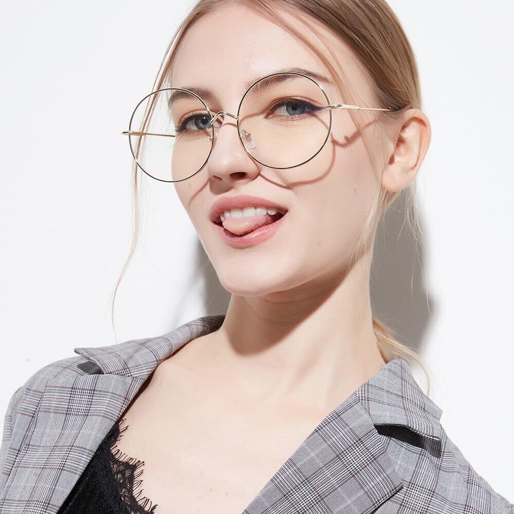 【在庫セール】[QIKEJI] 伊達メガネ 丸メガネ (ブラック)|大きめフレーム 華奢デザイン 眼鏡|ステンレスフレーム 耐久性に ファッション用めがね 日常・外出に最適|簡単着用 人気丸型サングラス風 | maimaiwalnut