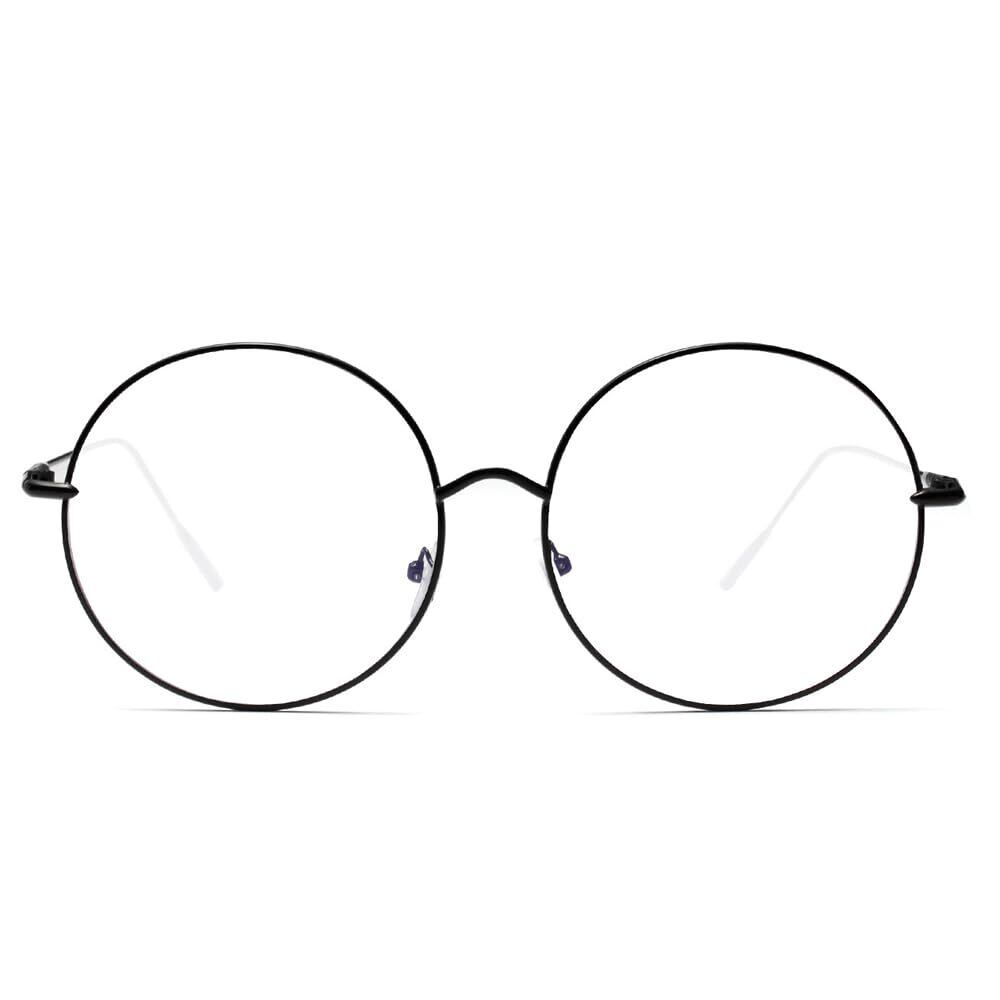 【在庫セール】[QIKEJI] 伊達メガネ 丸メガネ (ブラック)|大きめフレーム 華奢デザイン 眼鏡|ステンレスフレーム 耐久性に ファッション用めがね 日常・外出に最適|簡単着用 人気丸型サングラス風