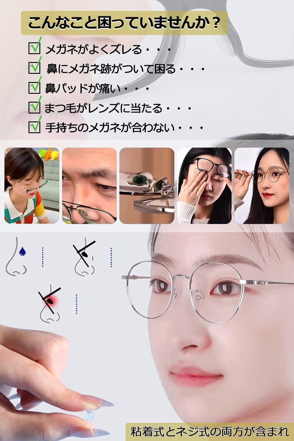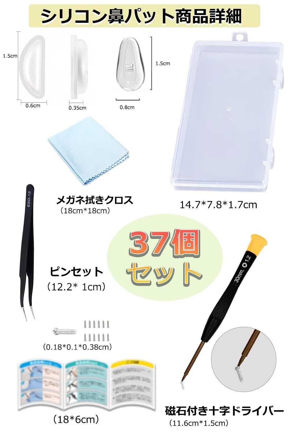 【数量限定】[Chinget] メガネ 鼻パッド 眼鏡 鼻あて シリコン ズレ防止 ノーズパッド 滑り止め 粘着式とネジ式各5セット 専用収納ケース メガネクロス ピンセット ドライバー ネジ付き | maimaiwalnut