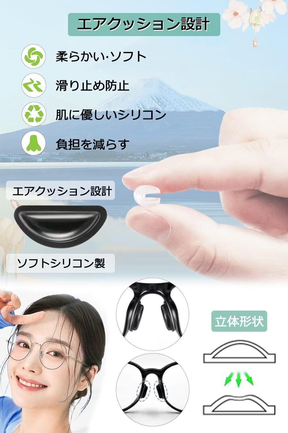 【特価セール】[LIFHEA] メガネ 鼻パッド 眼鏡 鼻あて シリコン ズレ防止 ノーズパッド 滑り止め 粘着式 12セット計24個 専用収納ケース・メガネクロス付き