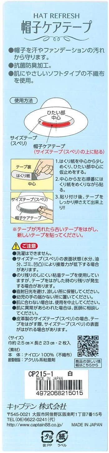 【在庫処分】CAPTAIN88 キャプテン 帽子 の ケア テープ シール 2枚入り 2.5cm幅×長さ23cm #2 黒 CP215