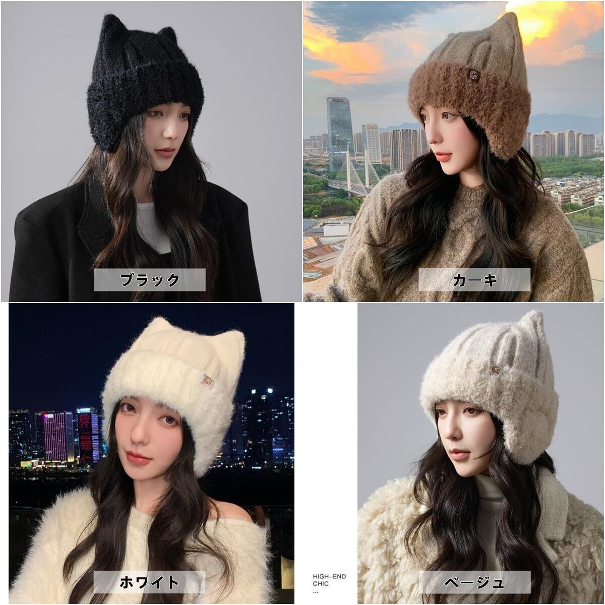 【特価セール】[Weuiean] レディース 猫耳 ニット帽 厚手ビーニー 起毛裏地 二重防寒 帽子 小顔効果 秋冬 防寒 保温 暖かい 可愛い MMB-17