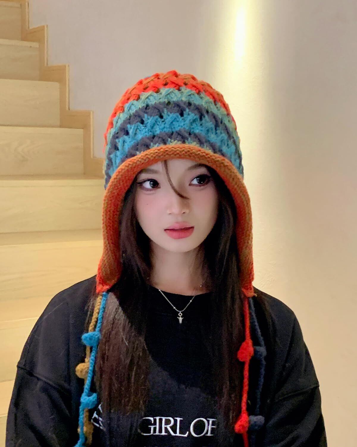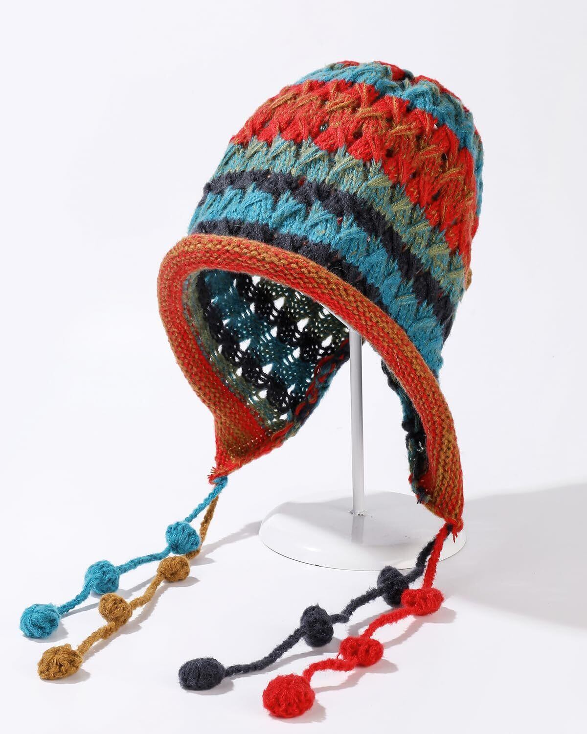 【新春セール】[shefun] 耳当て付き ニット帽 レディース フリンジ 太編み 毛糸の帽子 48-60cm 秋冬 フードニット帽 お下げ付き 暖かい 柔らかい 耳あて付き 防寒帽子JP510 | maimaiwalnut