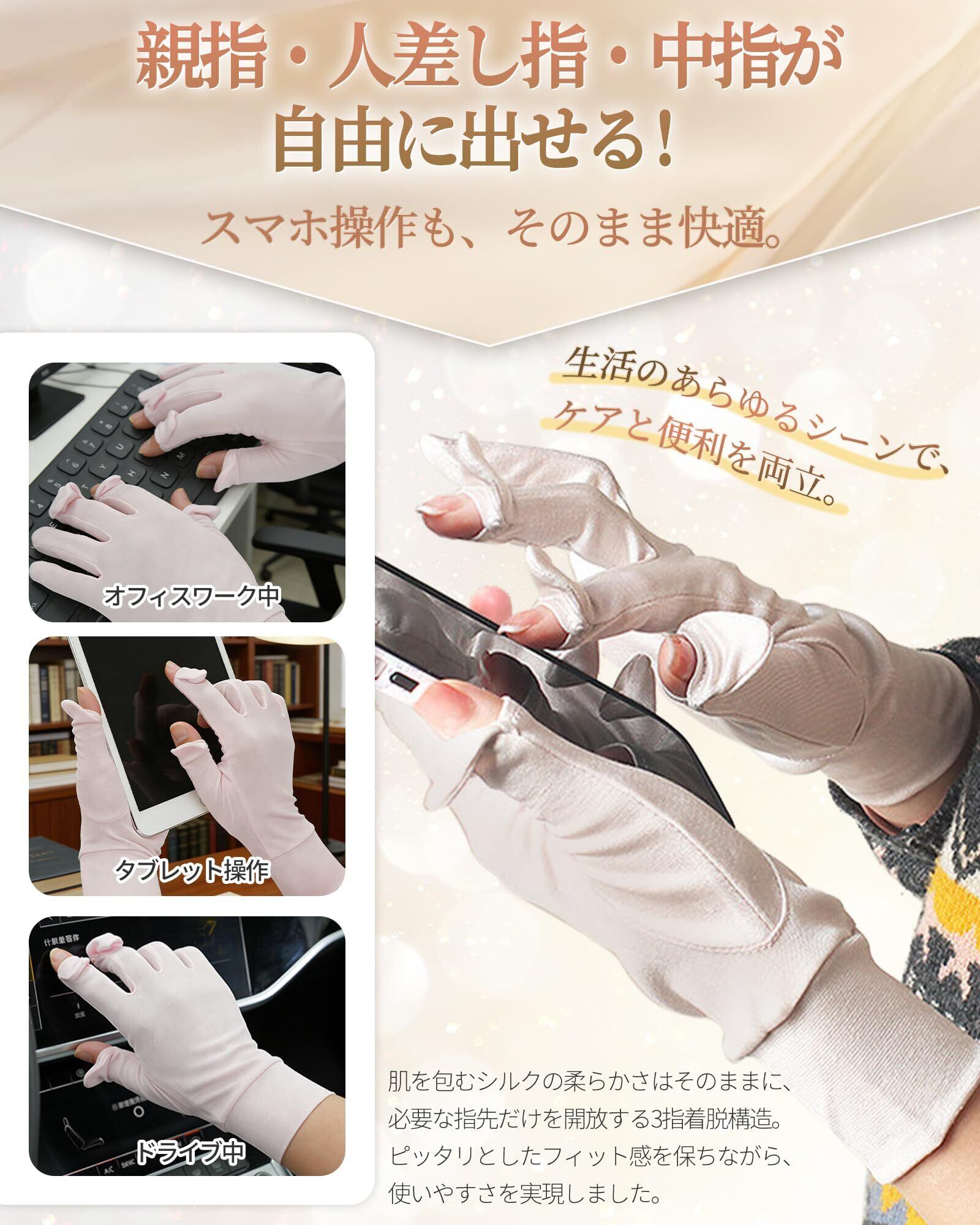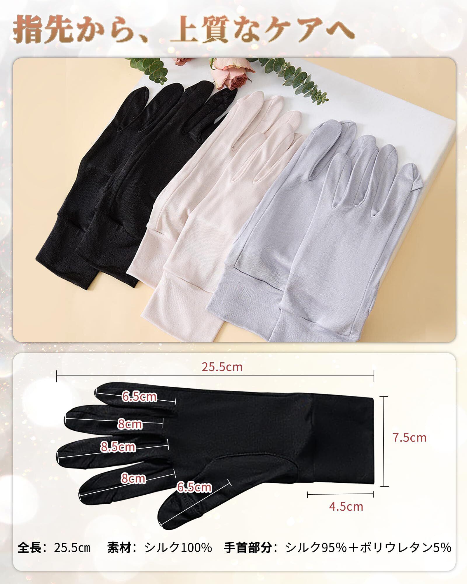 【新着商品】[VIVIMODA] シルク 手袋 保湿 スマホ対応 おやすみ 手袋/ナイト グローブ 【天然シルク100%x独自開発の3本指オープン設計】 ハンドケア UVカット 日焼け防止 手荒れ対策 夜用 レディース ワンサイズ (ブラック/ベージュ/グレー) | maimaiwalnut