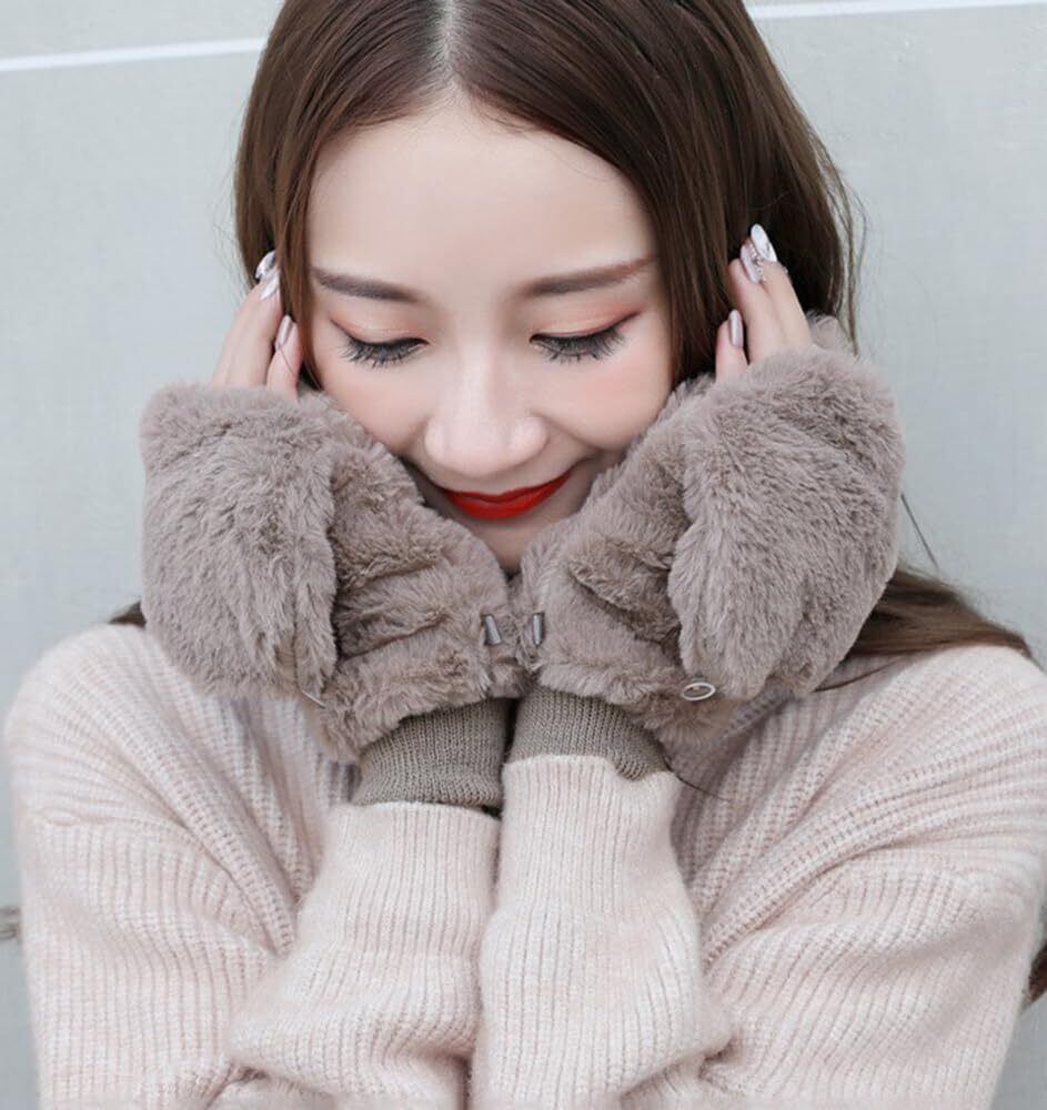 【2022最新】[Qiania] 手袋 レディース 冬 指なし ミトン 2way 手袋 かわいい 暖かい 裏起毛 厚手 折りたたみフード手袋 紐付き 通勤 通学 自転車 誕生日 クリスマス プレゼント | maimaiwalnut